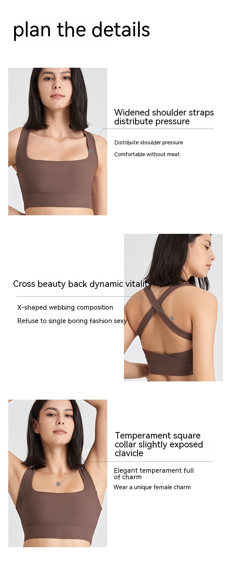 Tags : nylon lined sports bra, plus size activewear, push-up yoga bra, shockproof athletic vest, sports underwear, women's pullover lingerie,
