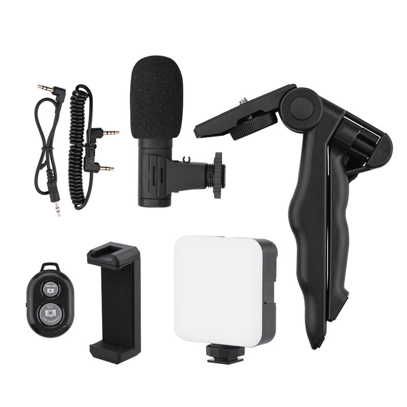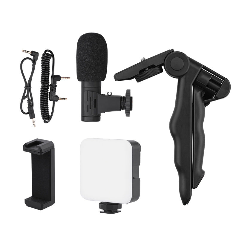 Package 4: Tripod x 1, mobile phone holder x 1, adjustable fill light x 1, microphone x 1, mobile camera controller x 1