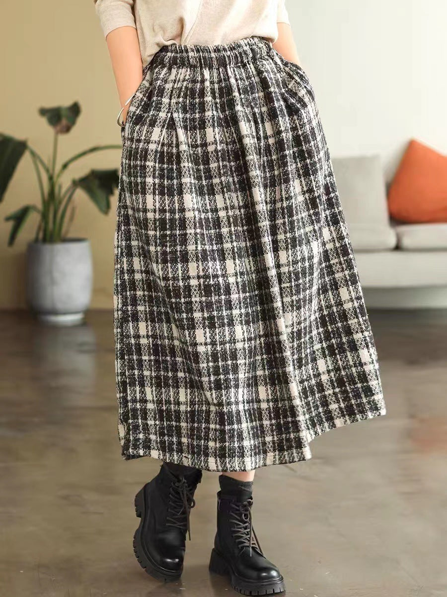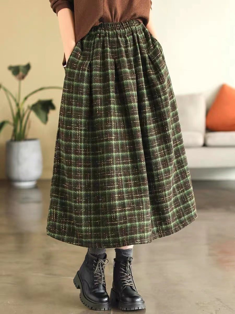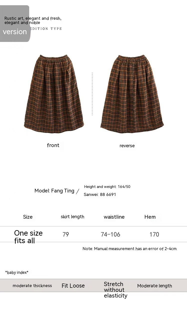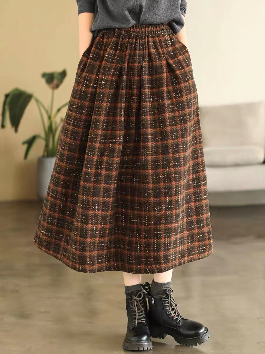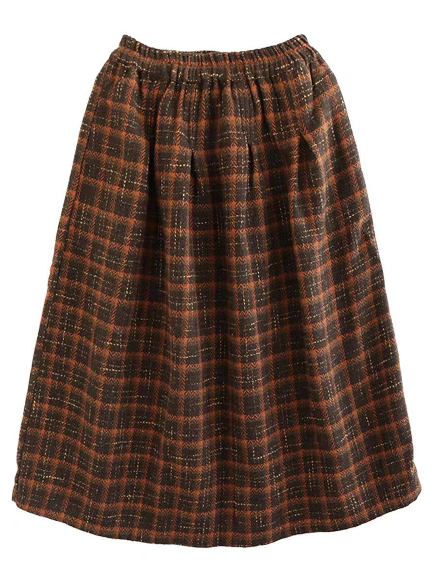 Tags : a-line mid-length skirt, art retro style skirt, asian size vintage dress, cashmere blend dress, elastic high waist dress, plaid woolen skirt,