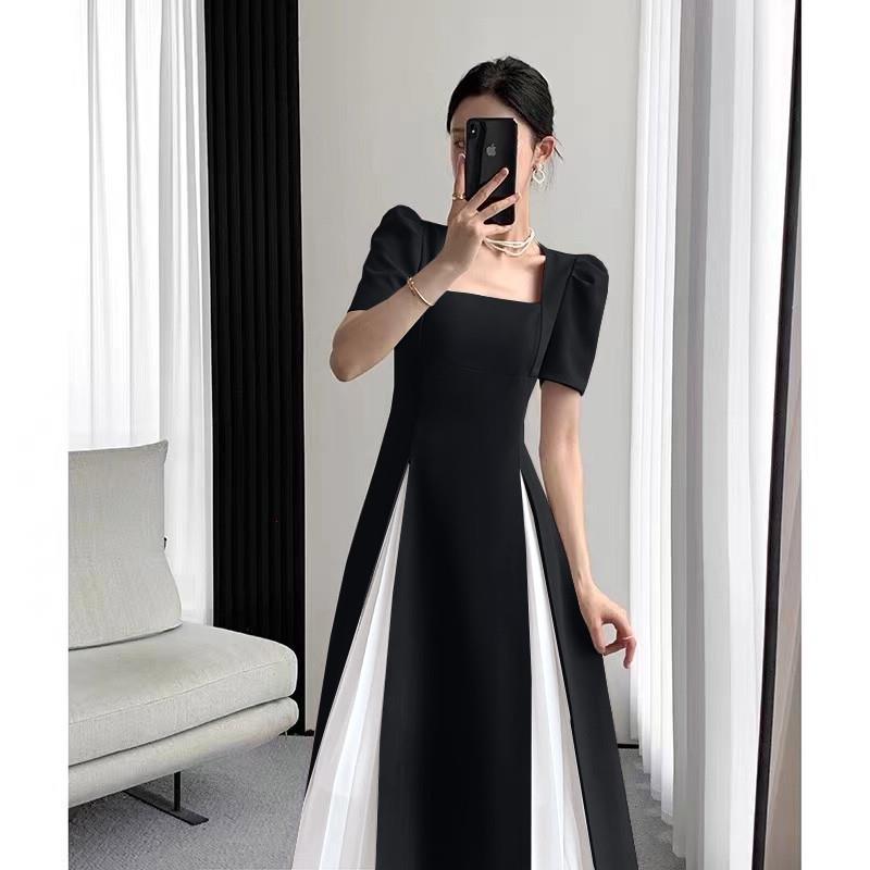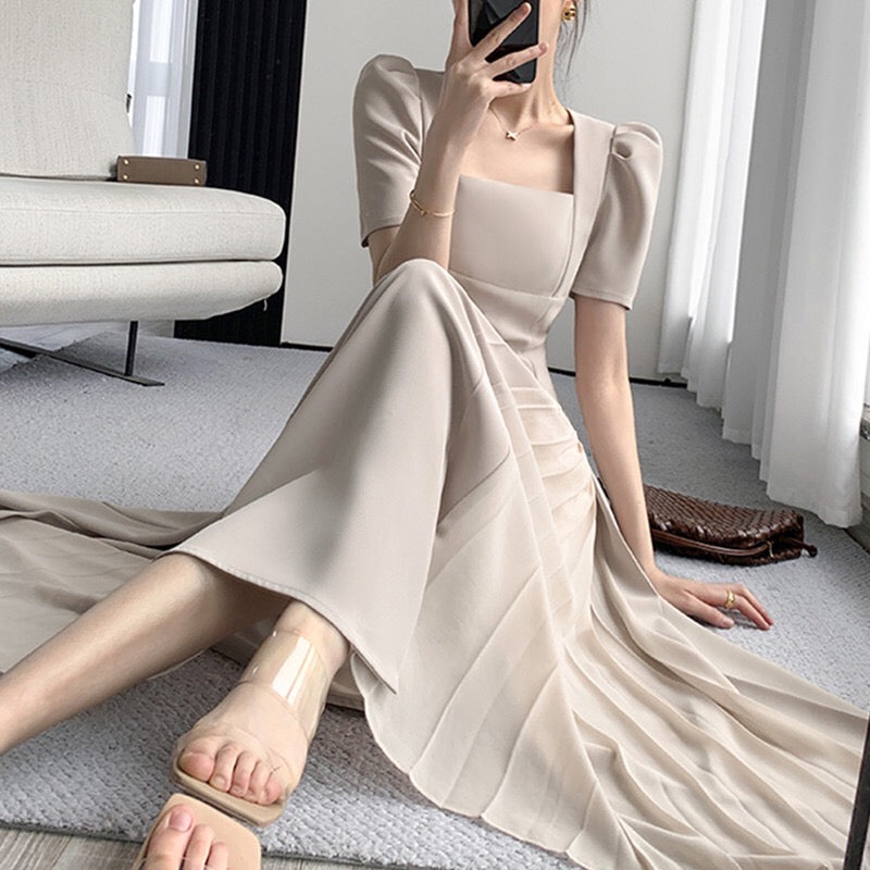 French Style Square Neck High-end Short Sleeved Dress