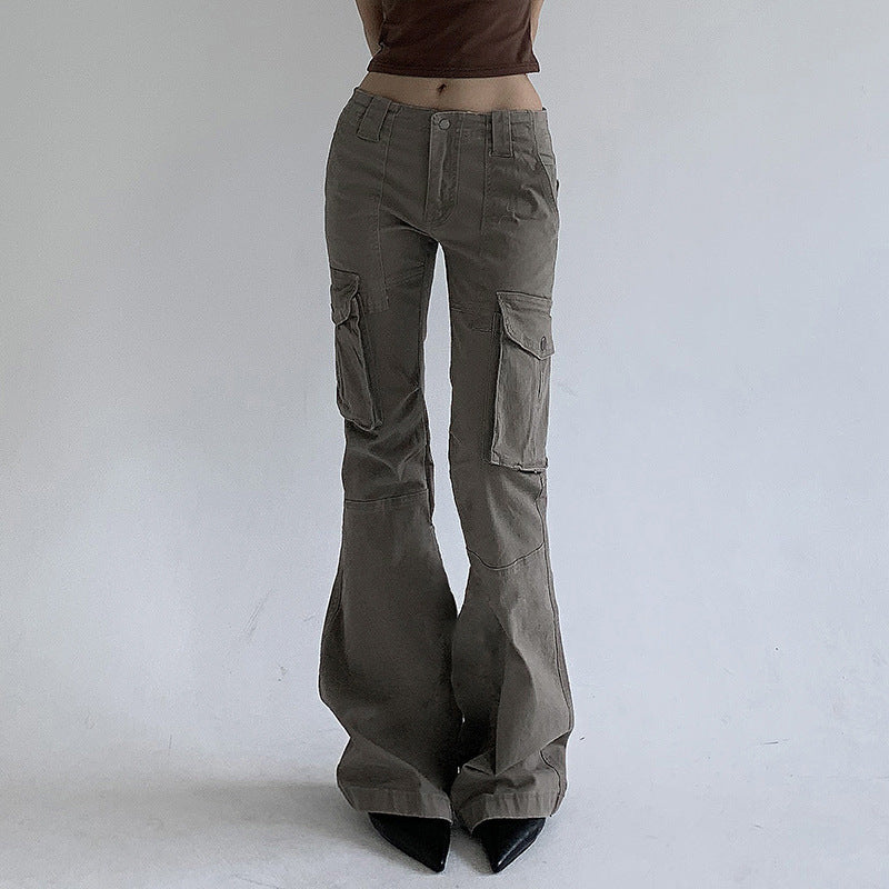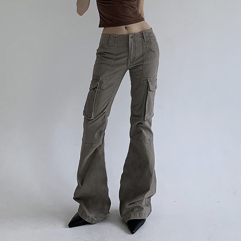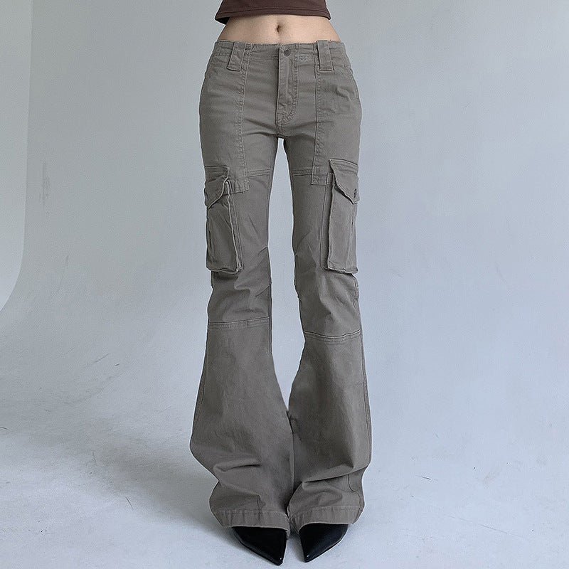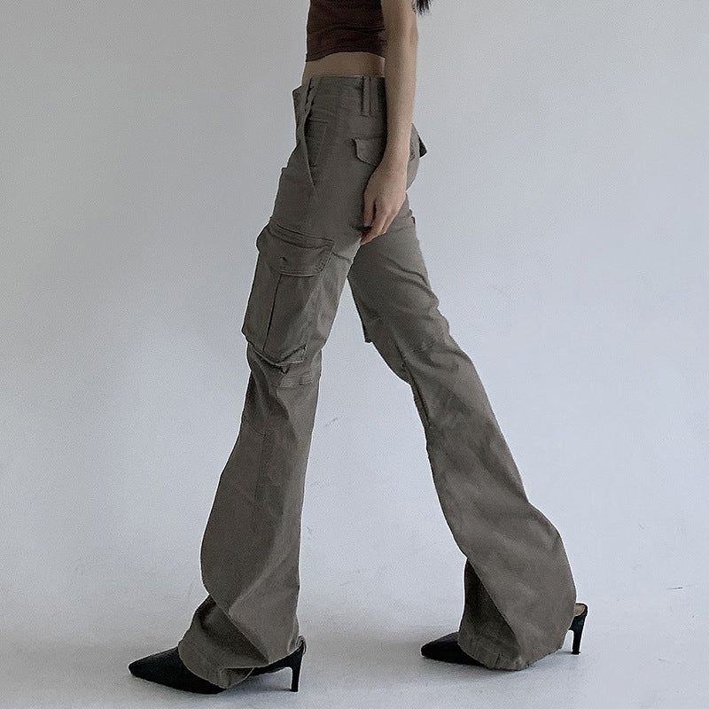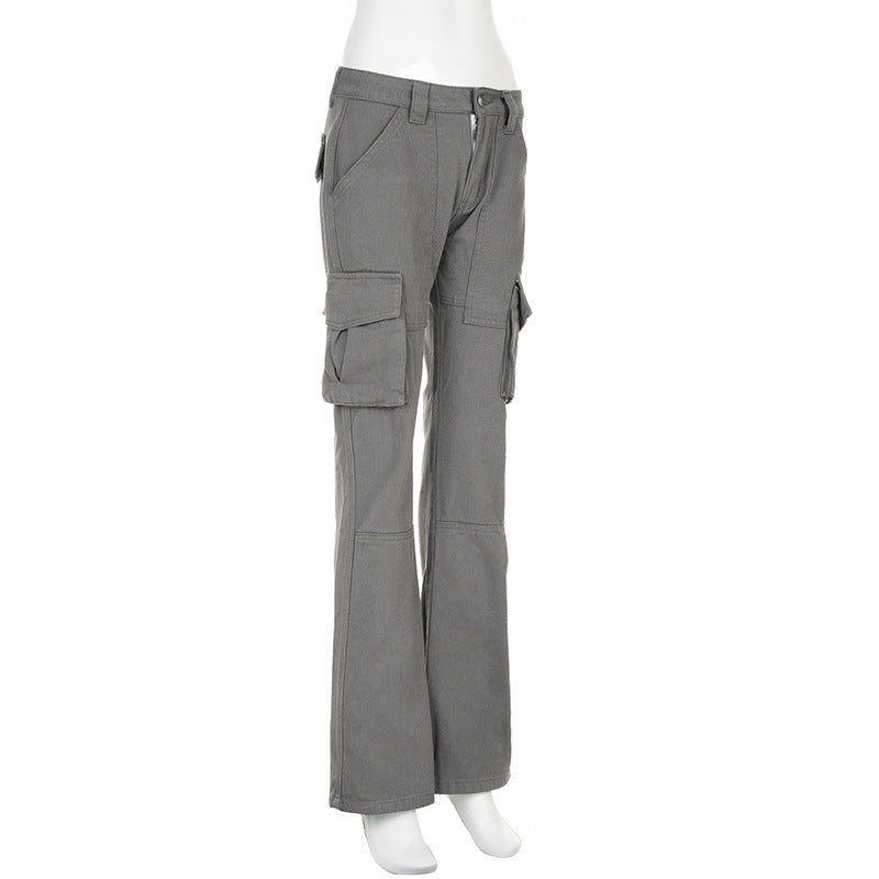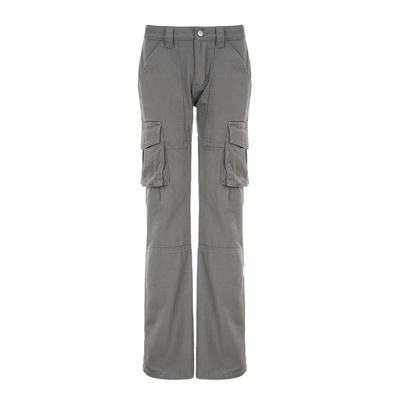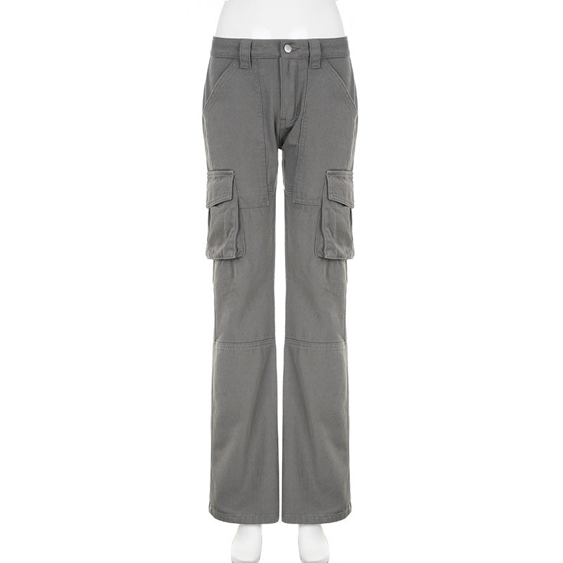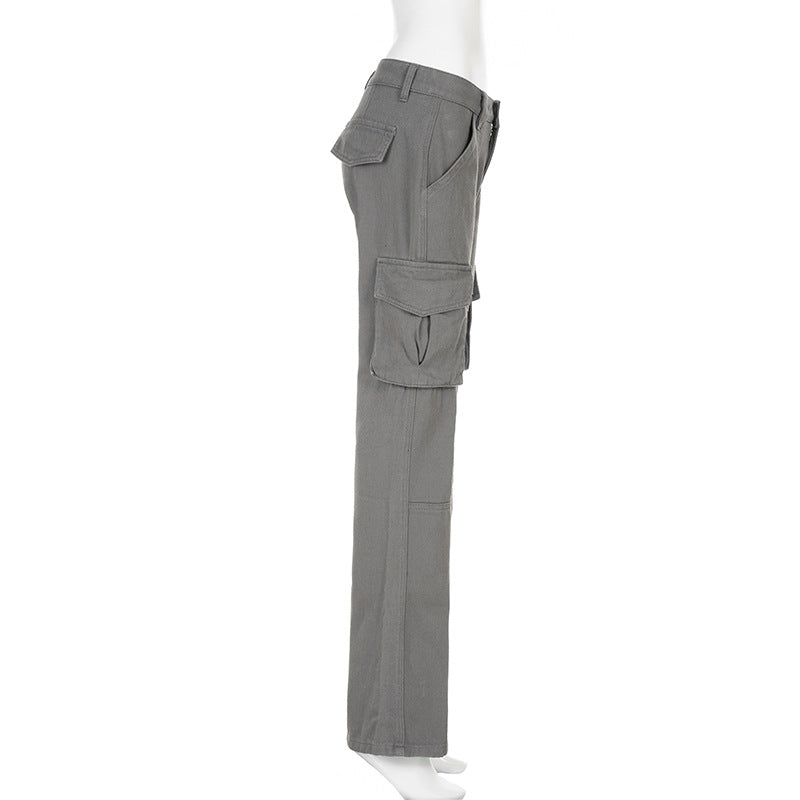 Tags : casual pocket pants, cotton woven pants, low waist trousers, micro-elastic fabric, street hipster style, women's straight-leg pants,