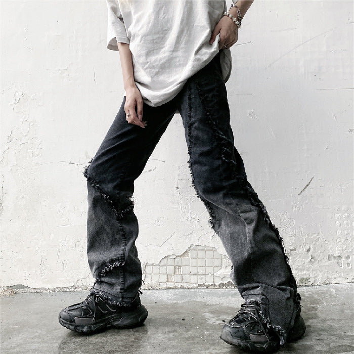 Tags : asian size women jeans, black gray denim pants, hip hop streetwear pants, plus size denim women, retro style denim, straight leg jeans women,