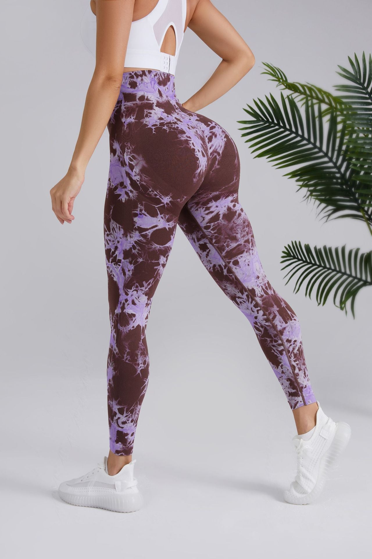 Tags : asian size athletic wear, high waist yoga pants, hip lift running tights, spandex nylon activewear, sports fitness leggings, tie-dye workout pants,