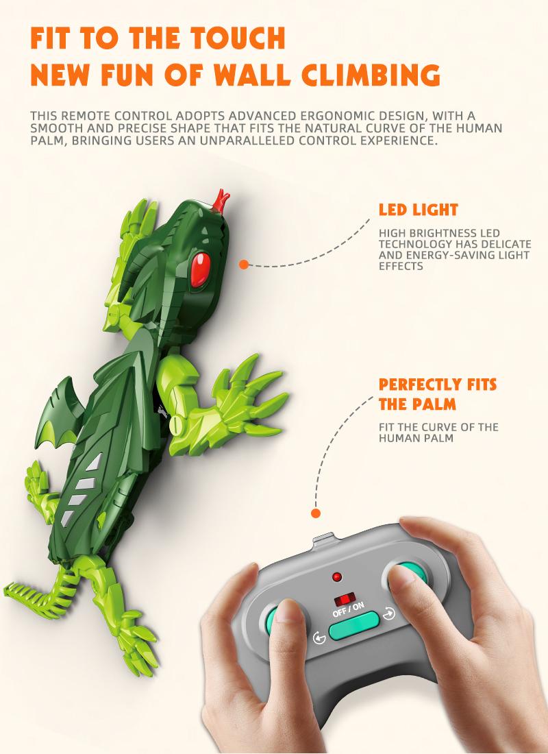 Wall-Climbing RC Gecko, a Rechargeable Remote Control Robot That Crawls on Floors and Walls! Features Stunning LED Eyes, Flapping Wings, and Makes a Cool Gift for Kids.