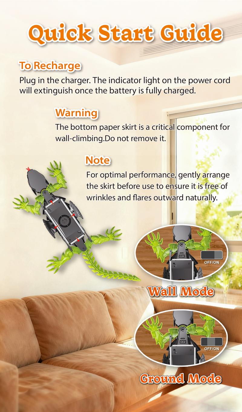 - Rechargeable Remote Control: This Wall Crawler Gecko is a rechargeable remote control robot, perfect for kids. 📡