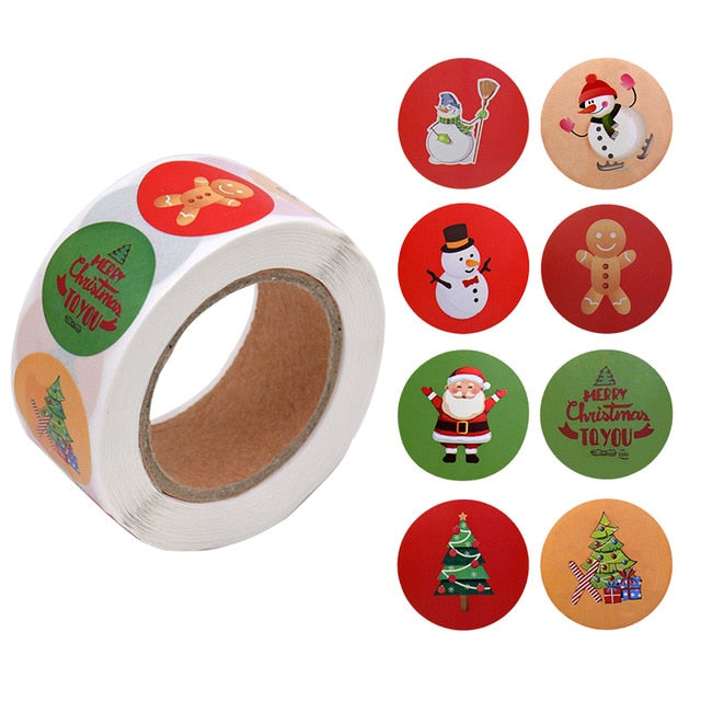 Tags : 500 piece sticker roll, christmas decoration stickers, custom kraft stickers, cv11 round labels, gift series label, holiday craft supplies,