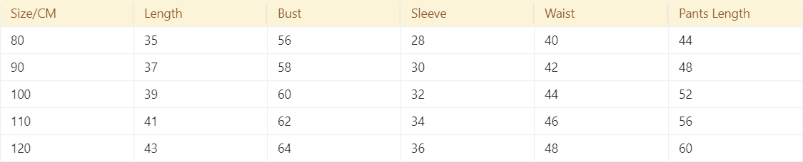 Size Chest Neck Sleeve