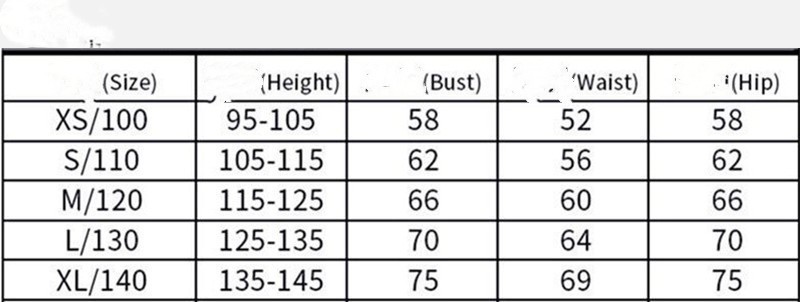 Suitable height: XS/100,S/110,M/120,L/130,XL/140, average size
