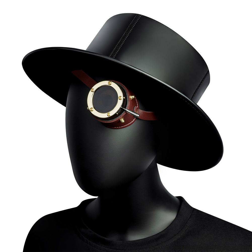 Tags : adjustable metal frame goggles, black lens goggles, brownish red frame goggles, halloween accessories, retro industrial eyewear, steampunk goggles,