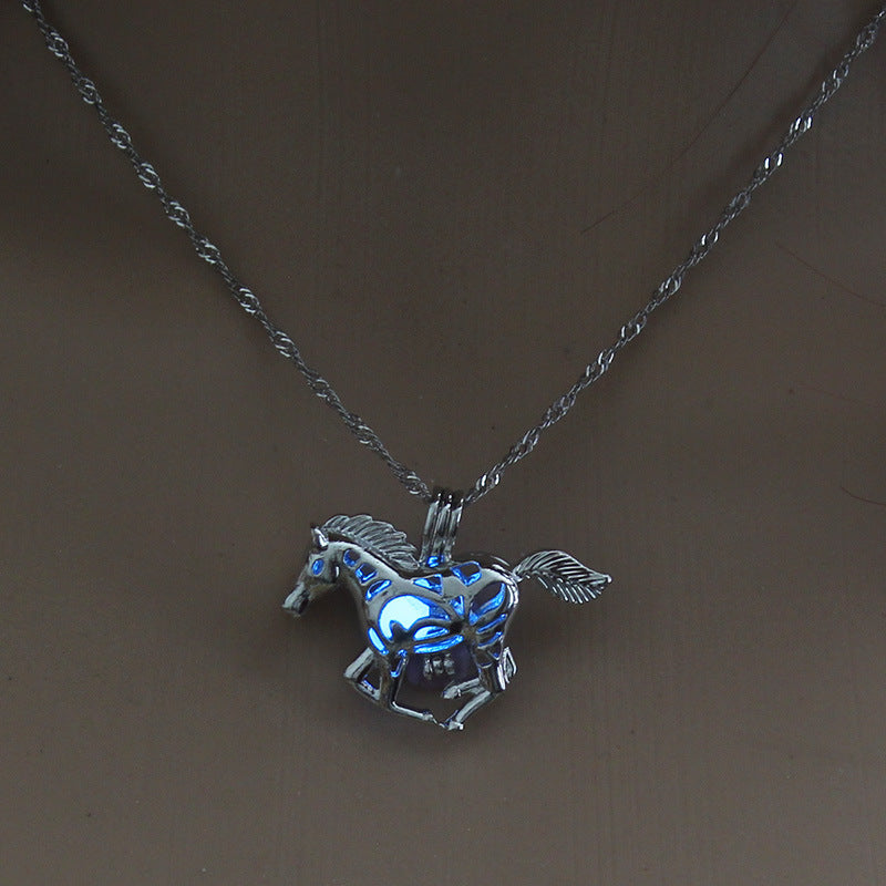 Europe and the United States sell fashionable luminous beads necklace, concise pierced Horse Pendant, spot direct Halloween jewelry