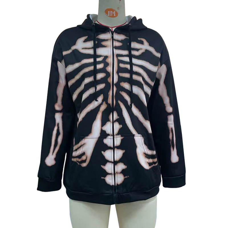 Fashion Halloween Skull Print Long Sleeve Hoodie