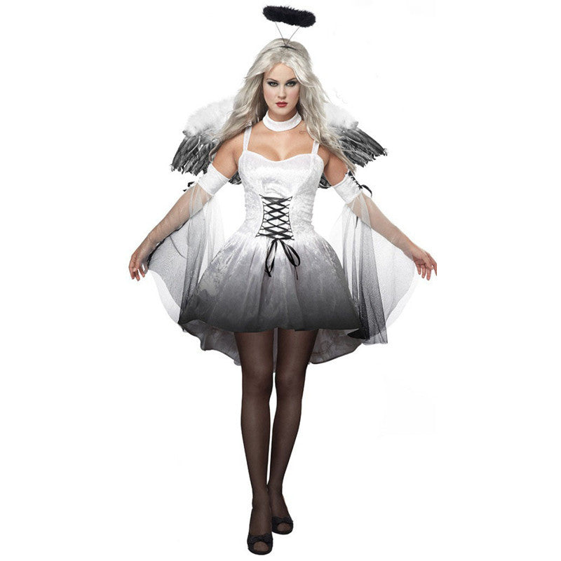 Tags : black white costume, dark angel costume, fashion personality outfit, plus size costume, polyester dress, women's halloween costume,