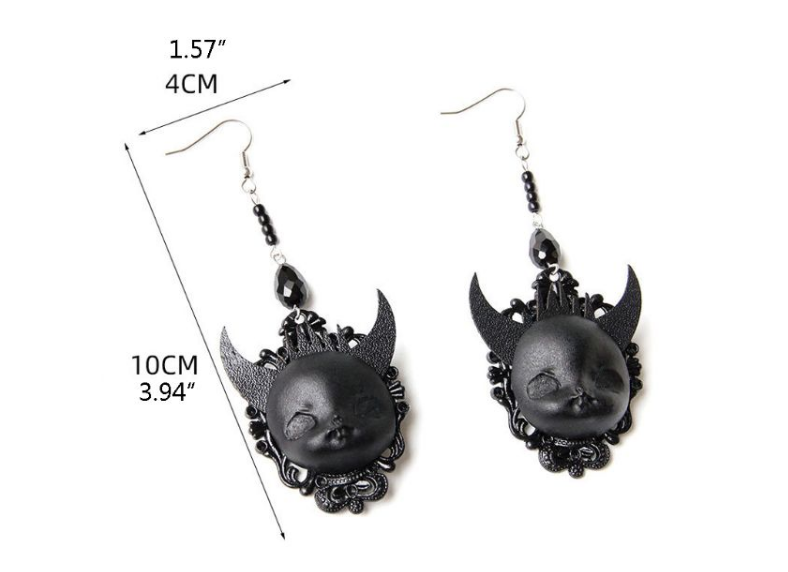 Gothic Punk Black Lolita Earrings Devil Death Earrings Witch Babys Dolls Drop Earrings Halloween Costume Fashion Jewelry
