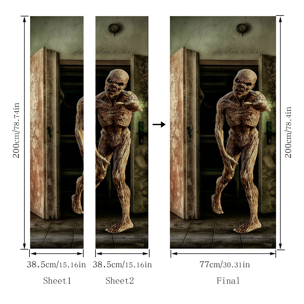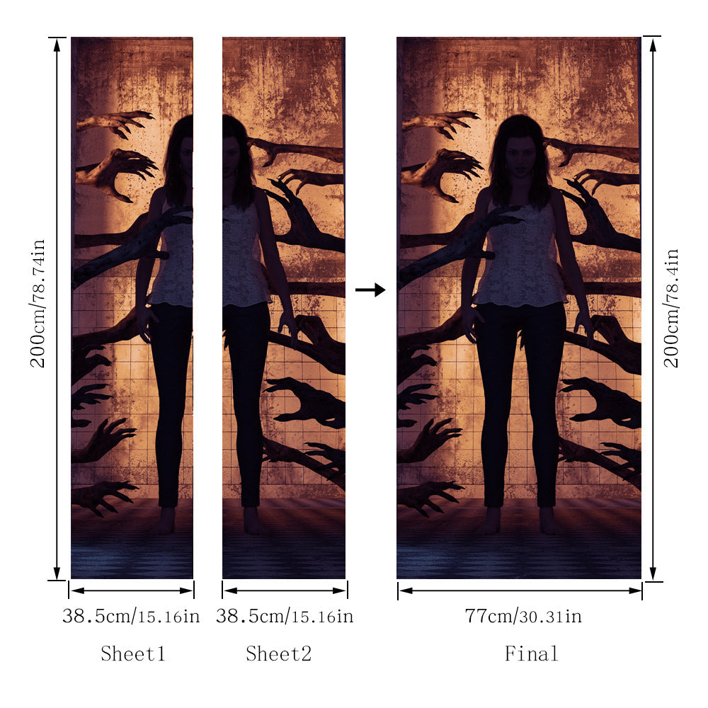 Tags : 3d door decoration, beautify home decor, colorful door vinyl, halloween door sticker, personality door decal, pvc door cover,