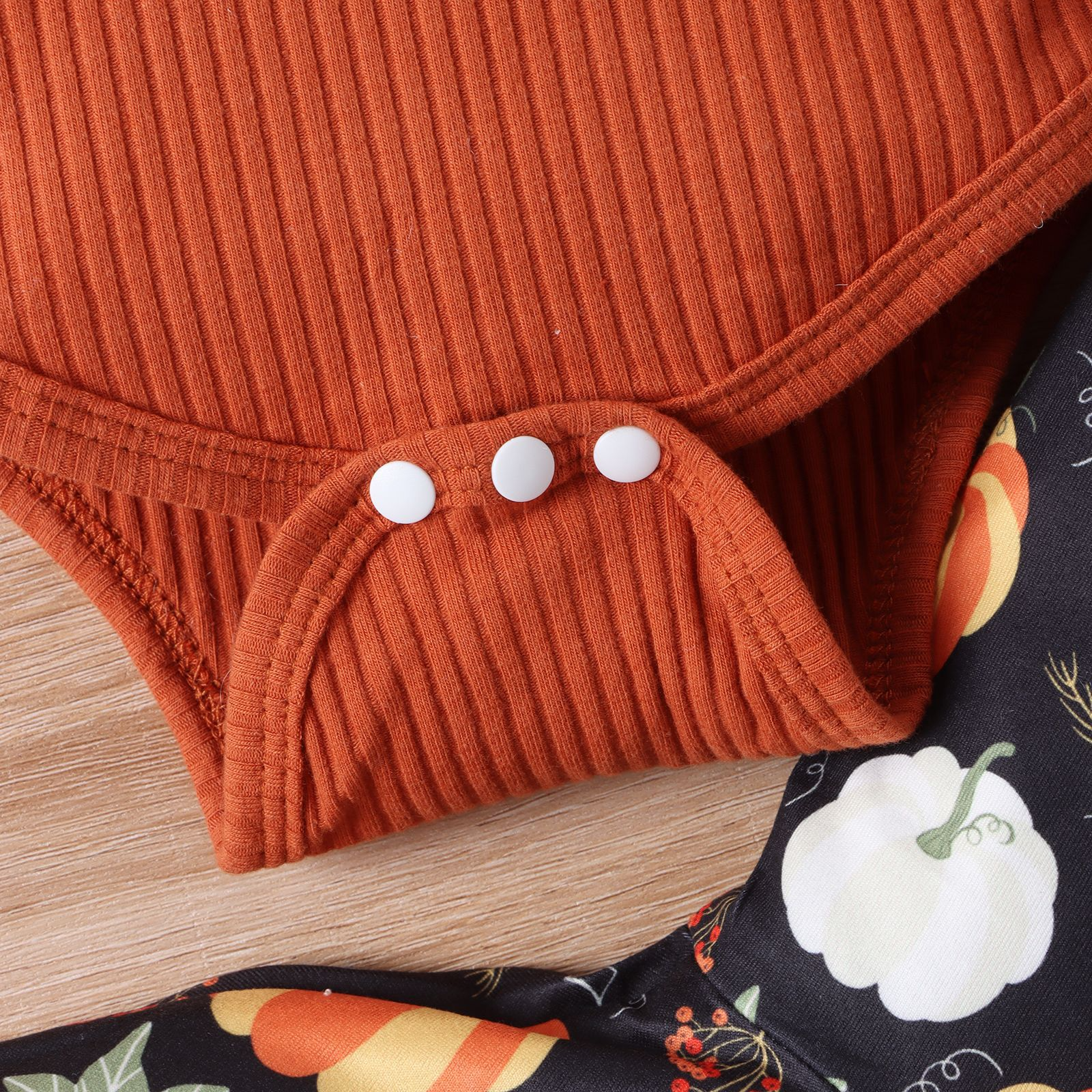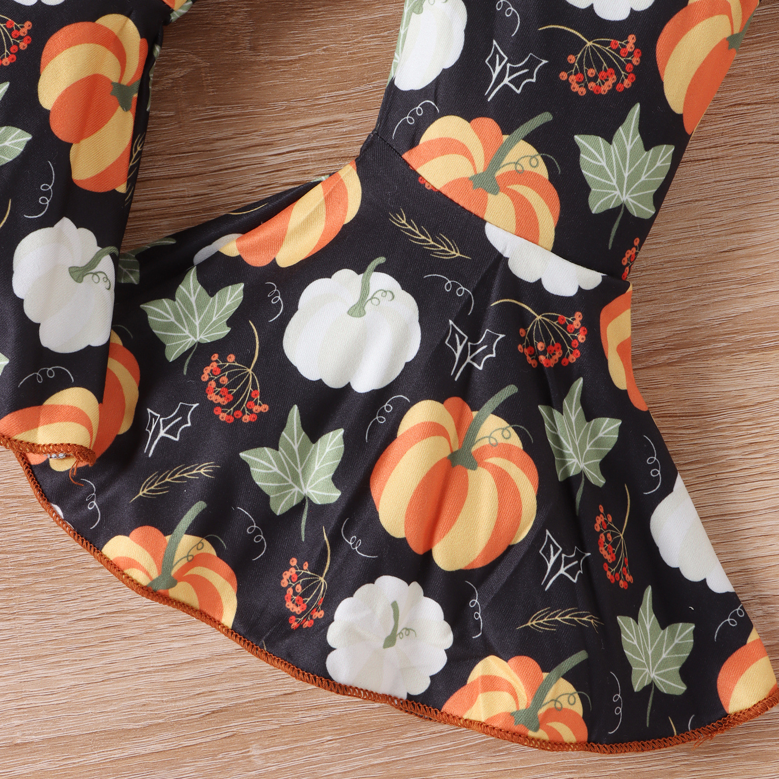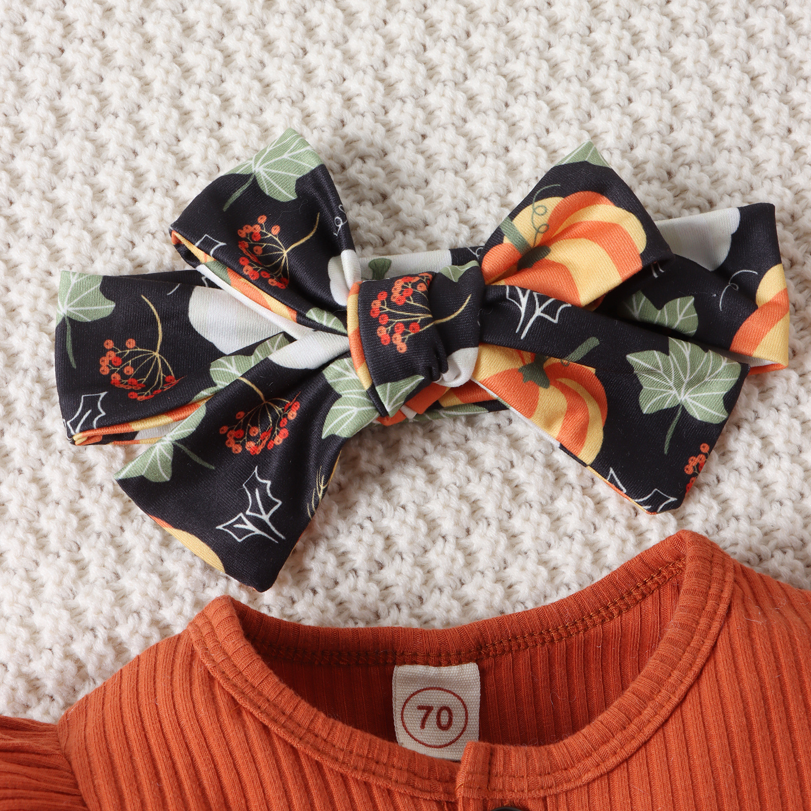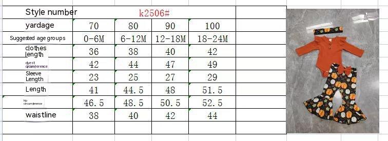 Halloween Autumn And Winter Infant Long-sleeve Jumpsuit Pumpkin Print Flared Pants Hair Band Girls' Suit