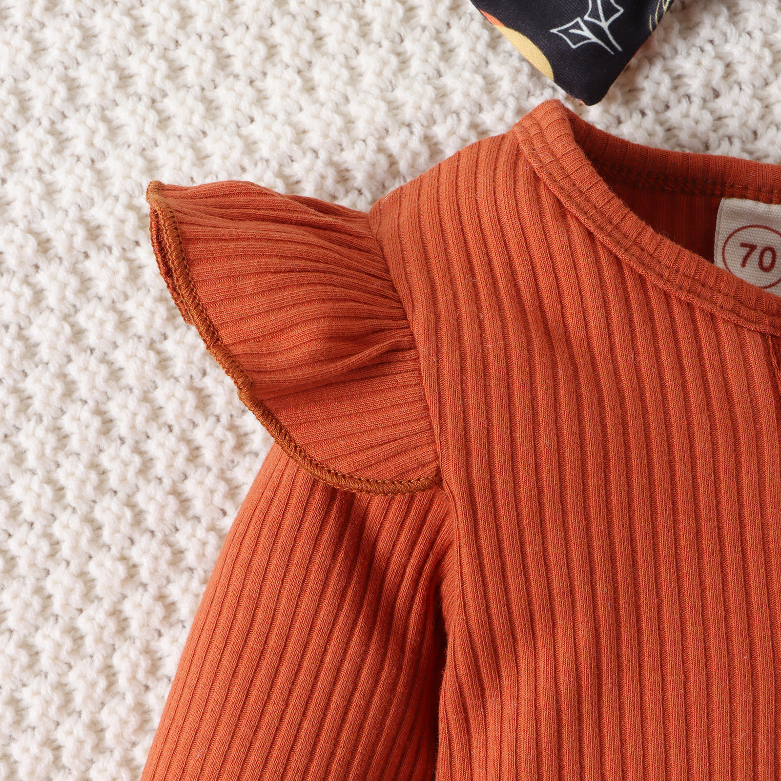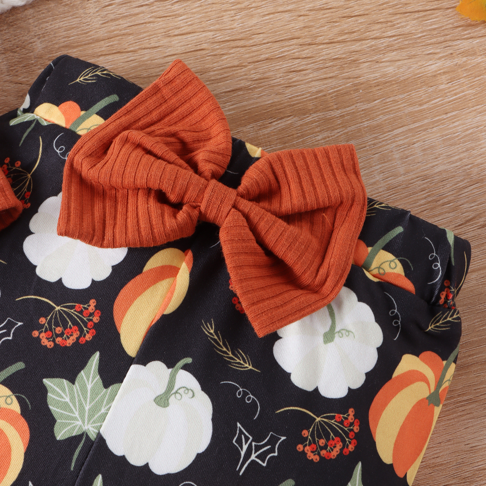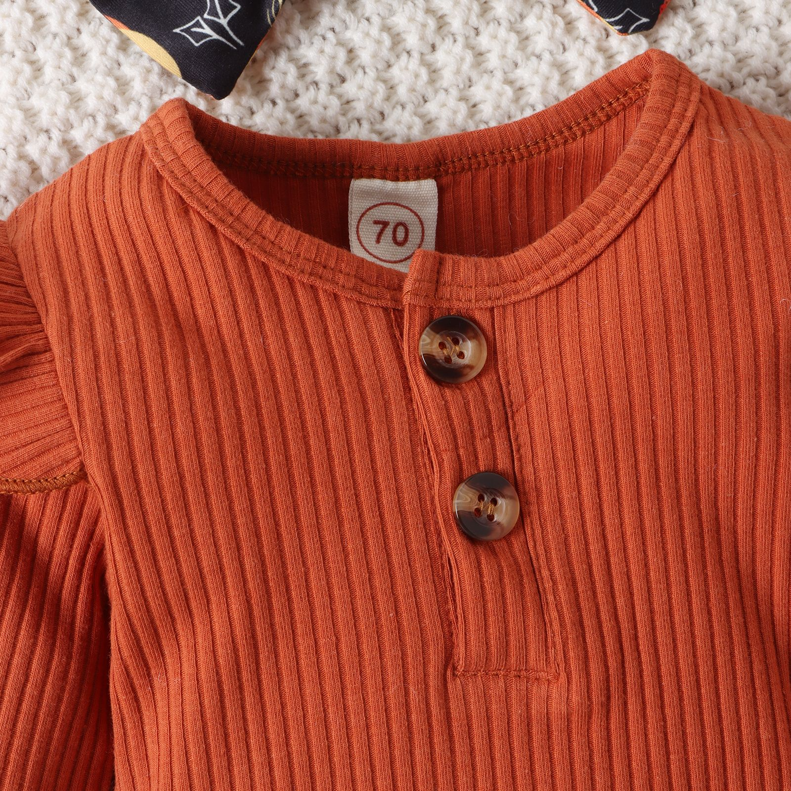 Halloween Autumn And Winter Infant Long-sleeve Jumpsuit Pumpkin Print Flared Pants Hair Band Girls' Suit