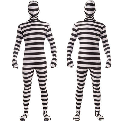 Tags : asian size cosplay apparel, black and white striped hat, gender-neutral party costume, halloween prison uniform, polyester one-piece costume, unisex game pack outfit,
