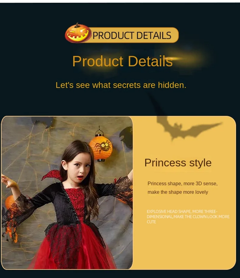 Tags : acetate fiber costume, children's vampire costume, girls european style dress, halloween princess dress, kids halloween outfit, lace gauze dress,