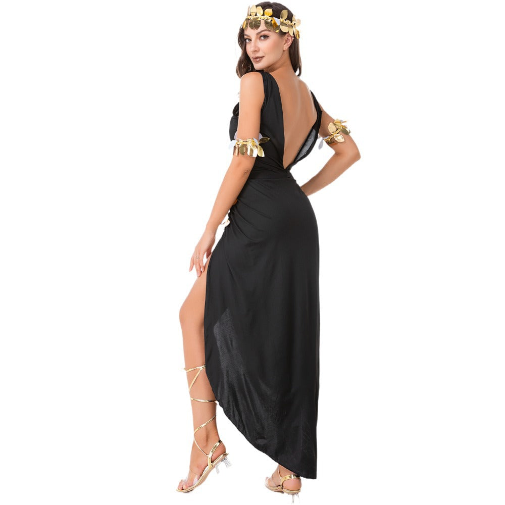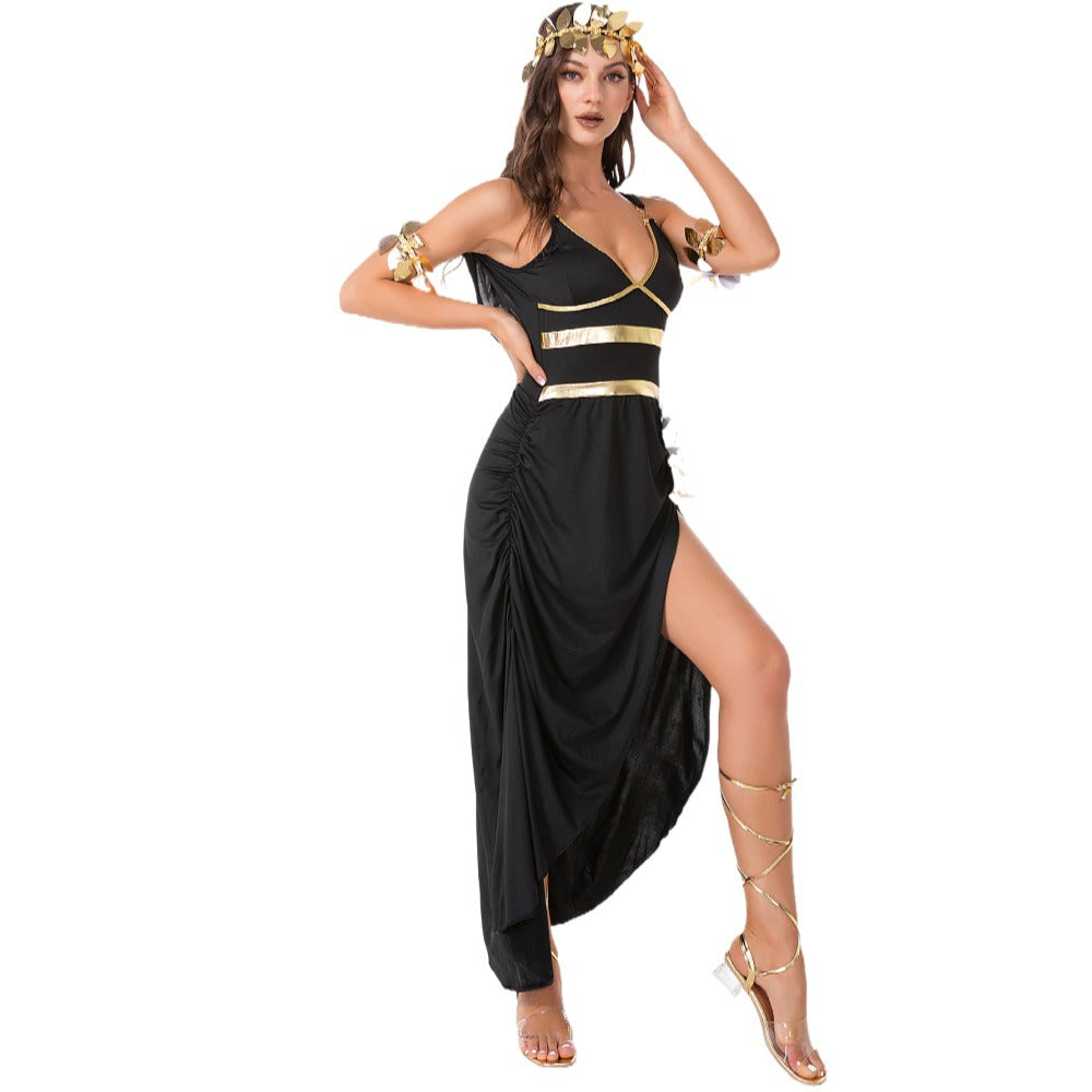 Tags : black cleopatra costume, full length black dress, halloween costume female, polyester evening dress, size inclusive jumpsuit, women's stage outfit,