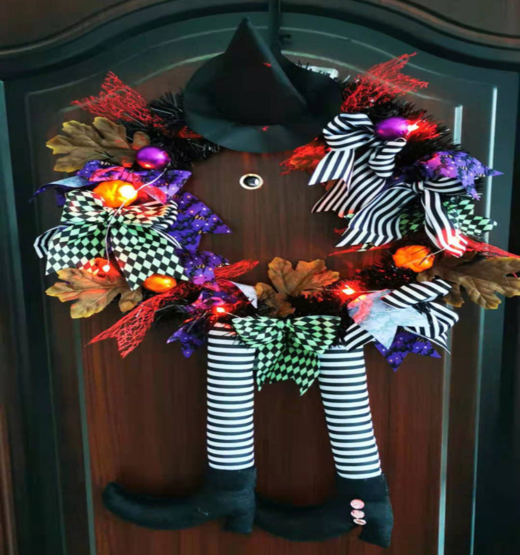 Halloween Door Hanging Wreath Supplies Decoration Halloween Witch Hat Leg Pumpkin Door Wreath Halloween For Home Party Supplies