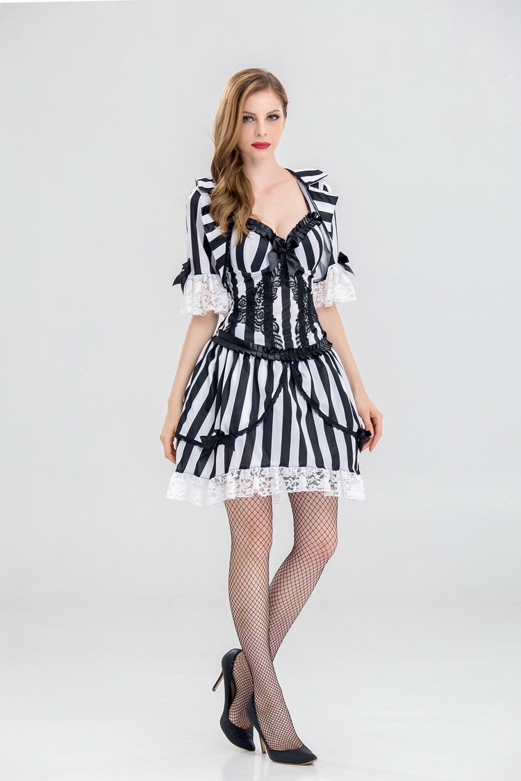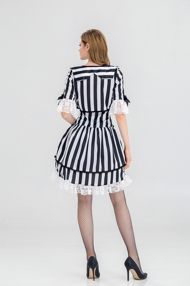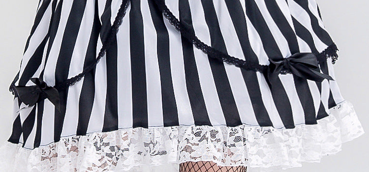 Tags : asian size clothing, black dress costume, cotton blend dress, halloween ghost bride costume, polyester fiber dress, striped white dress,