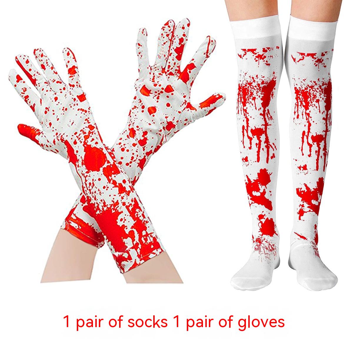 Color: one pair of Halloween blood stain gloves, one pair of Halloween blood stain socks, two sets of Halloween gloves socks