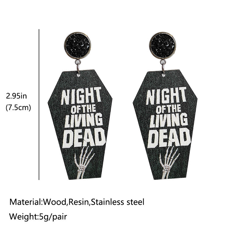 Halloween Horror Grave Undead Bat Coffin Cross Earrings