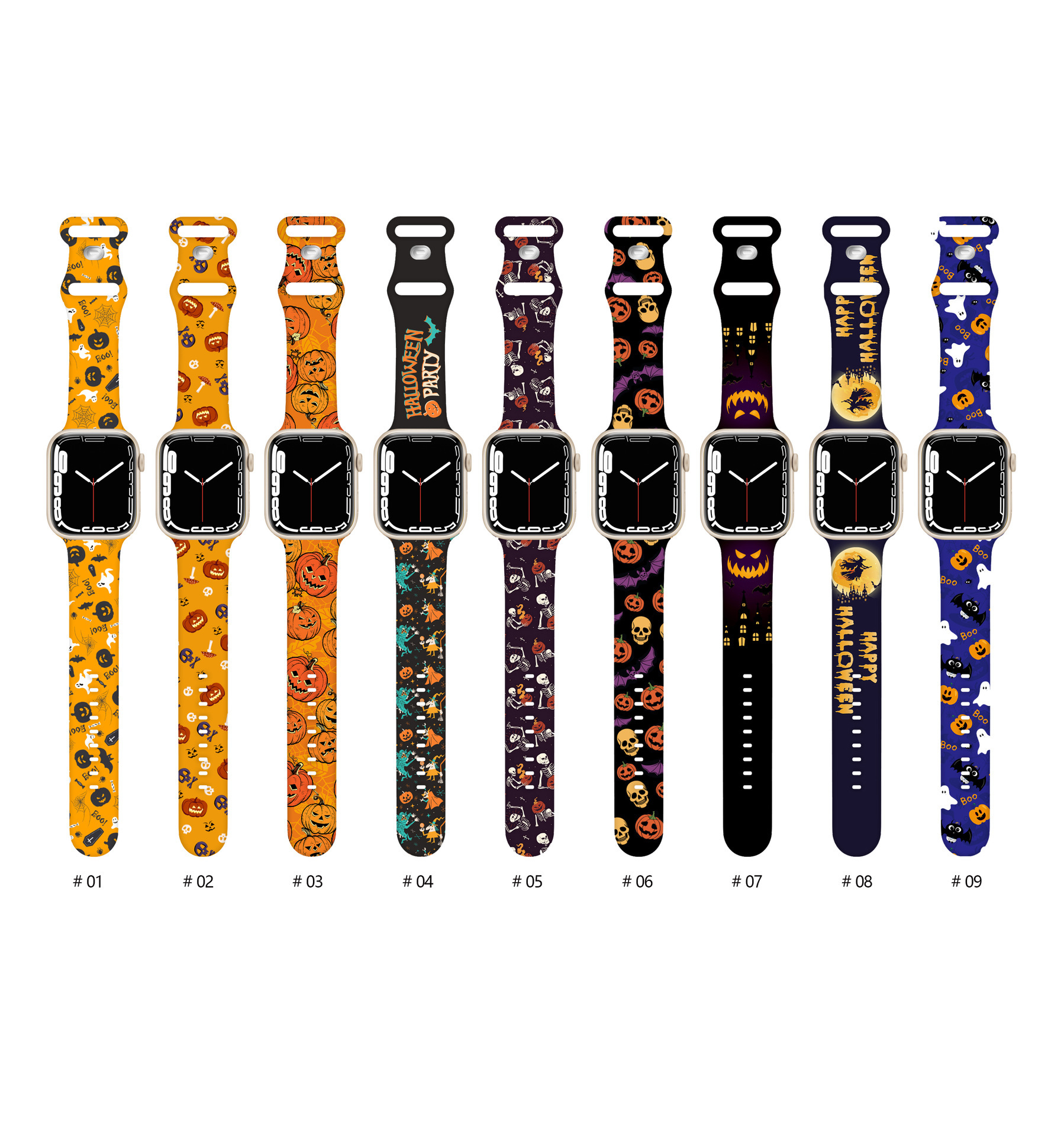 Tags : apple watch band, colorful watch straps, halloween watch accessory, multiple sizes watch band, non-apple silicone strap, silicone watch strap,