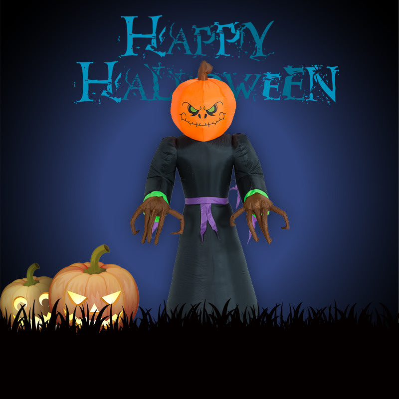 Descriptions Create the ultimate spooky Halloween display in your own yard this holiday season with our large 7 ft tall, creepy inflatable pumpkin reaper from HomCom! Our self-inflating decorations feature internal LED lighting for an...