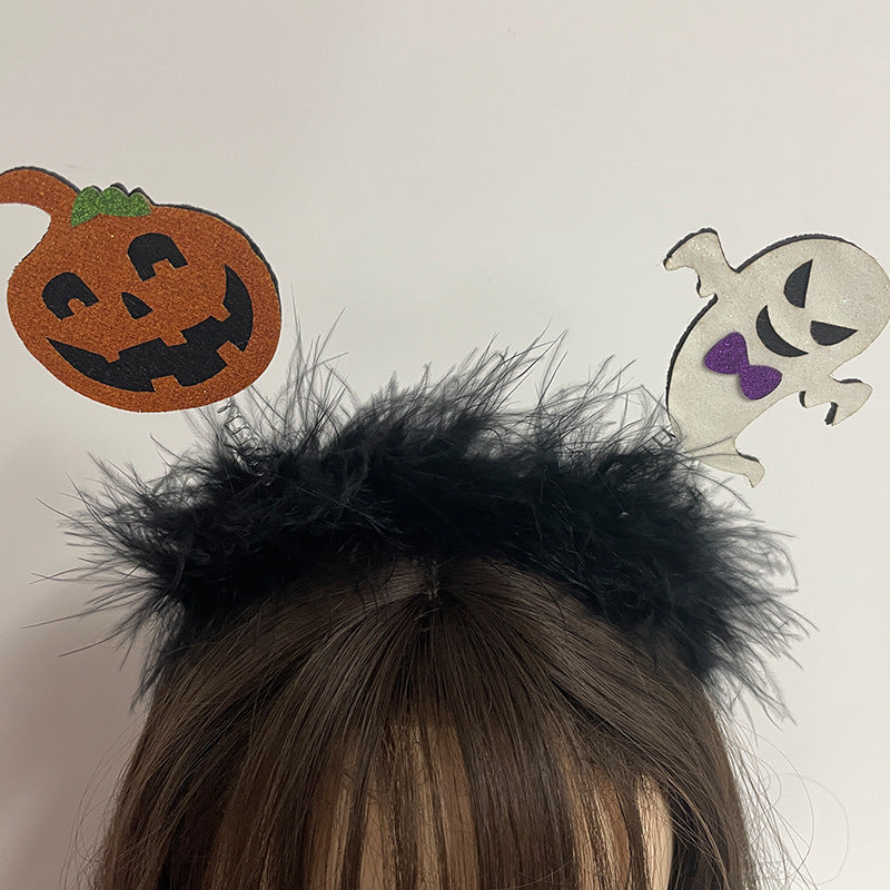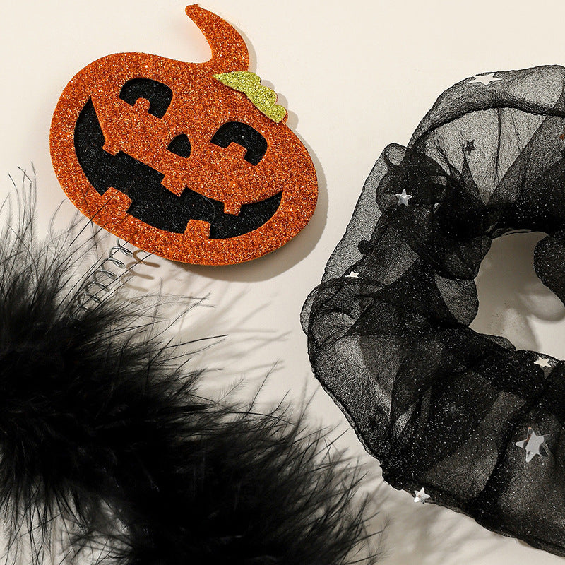 Tags : black fluffy headwear, cloth pumpkin headband, halloween costume accessory, halloween headband, pumpkin hair band, unisex halloween accessory,
