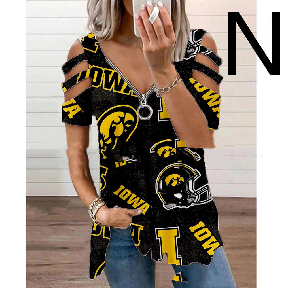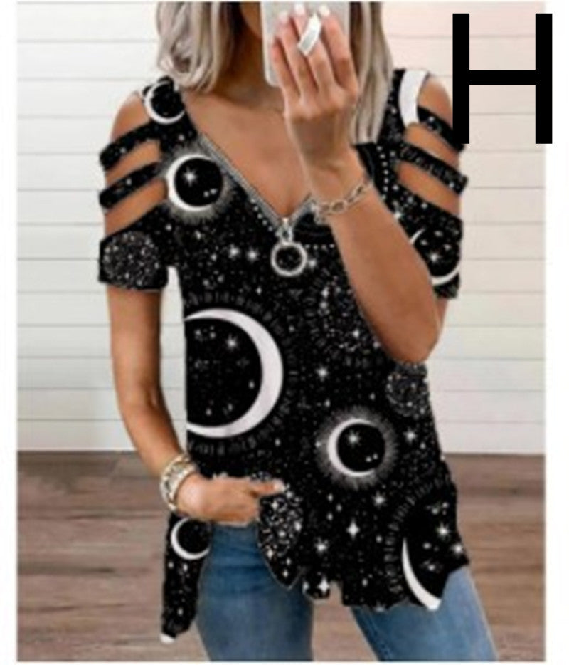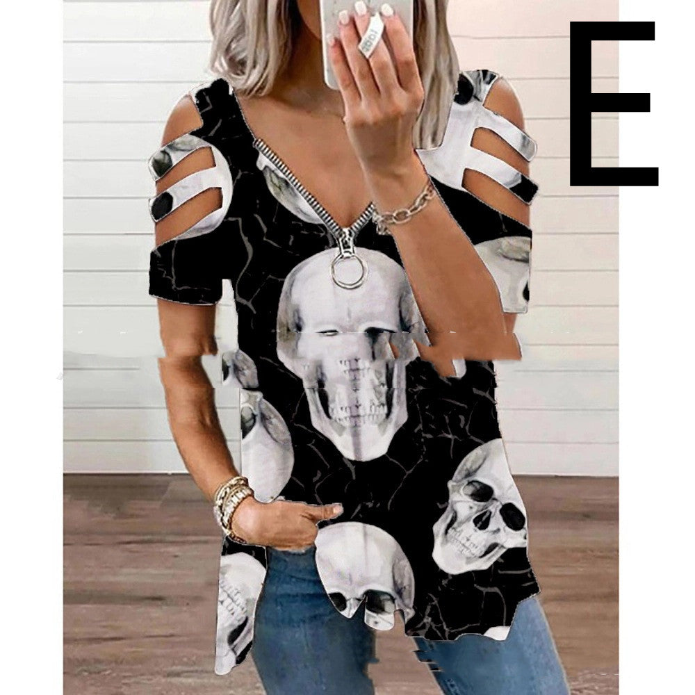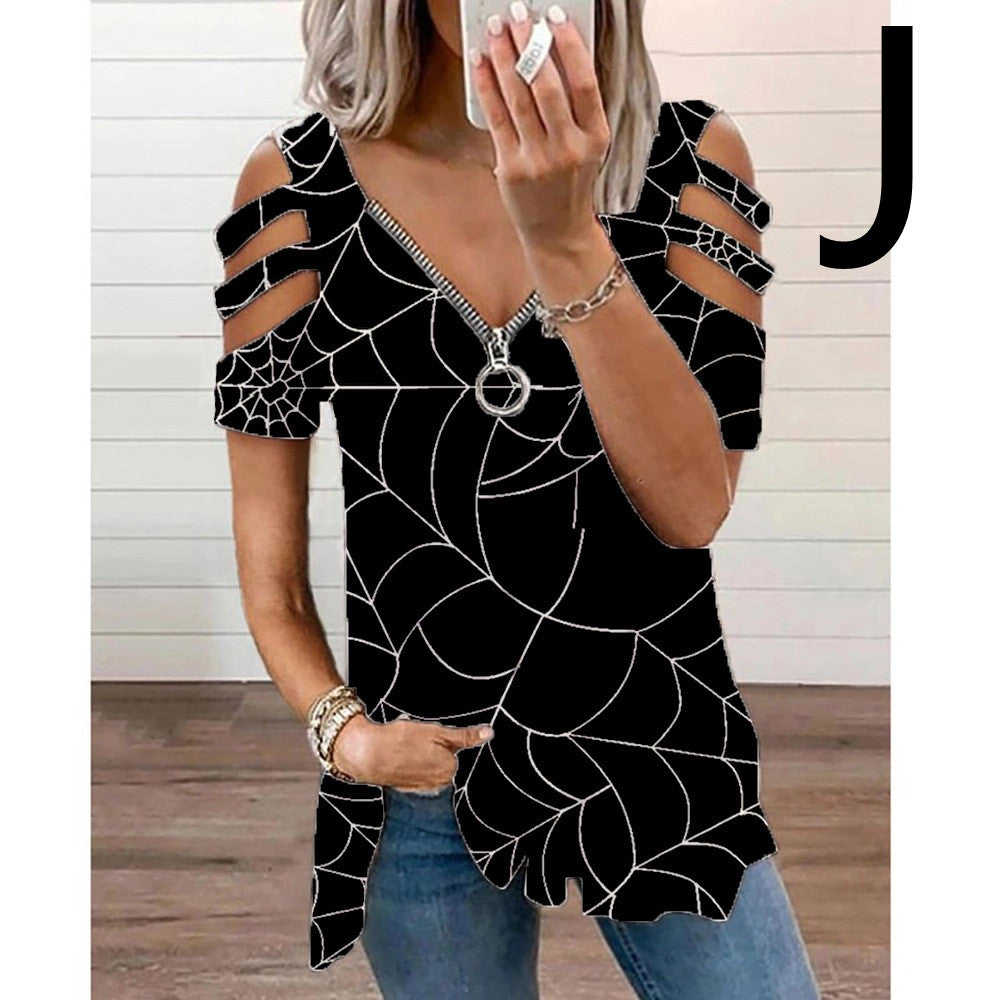 Halloween Theme Digital Printing Hollow V-neck Long-sleeved T-shirt