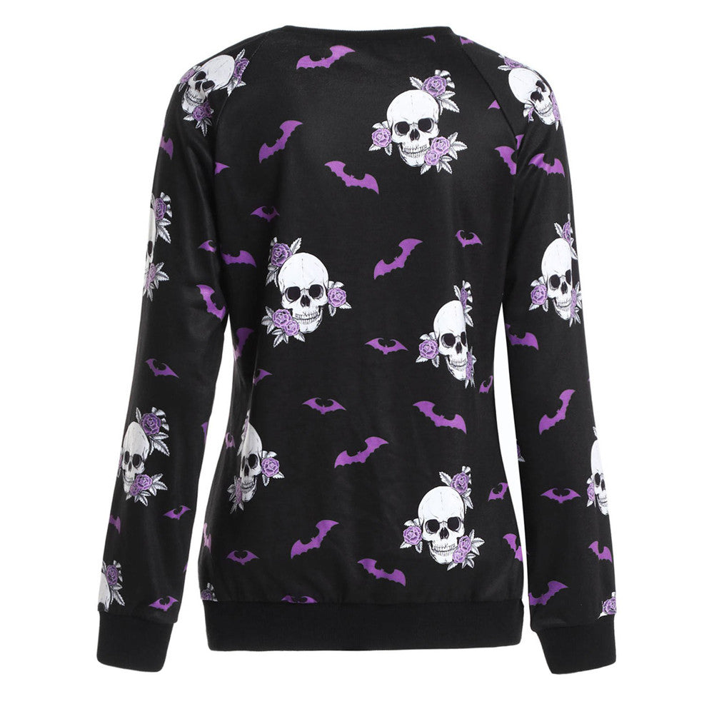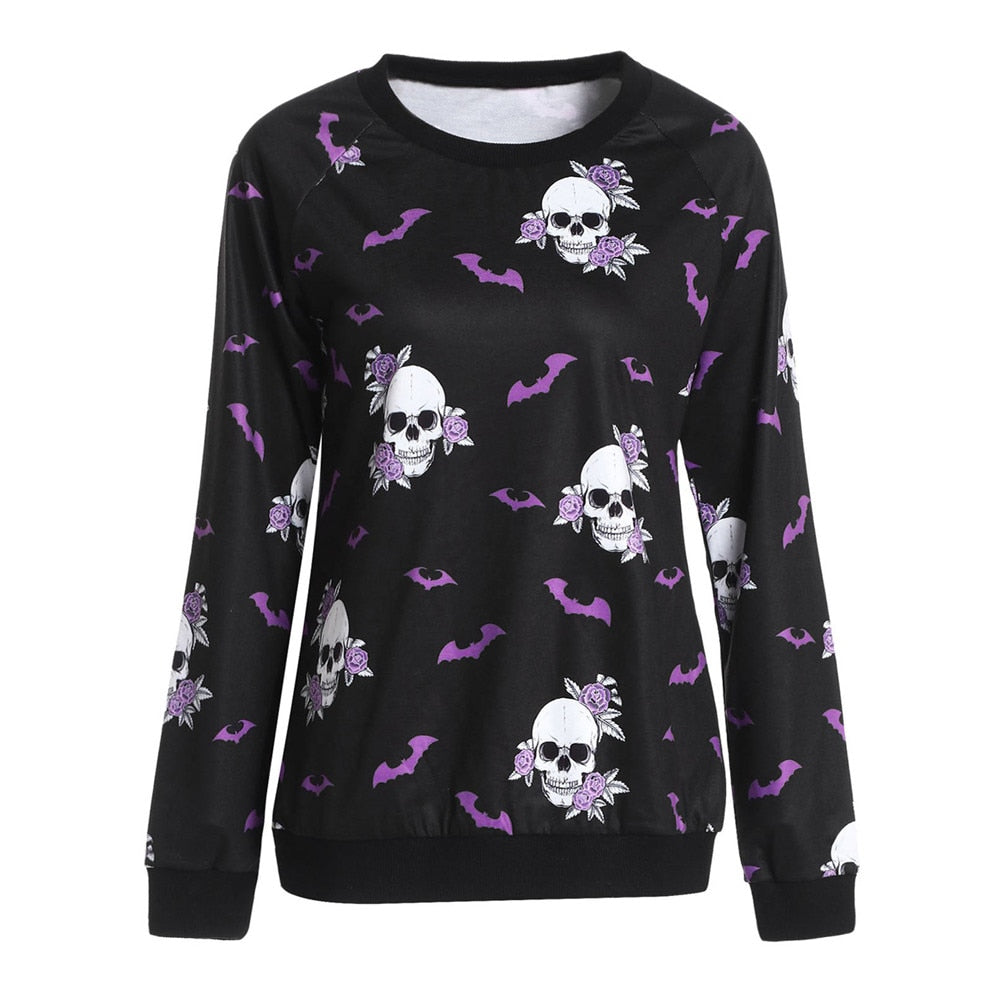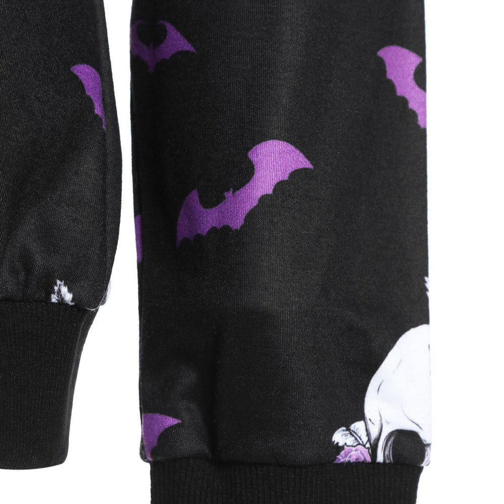 Jumper Women Tracksuits Sportswear2021 Winter New Fashion Halloween Crew Neck Long Sleeve Terror Bat Skull Print Sweatshirt