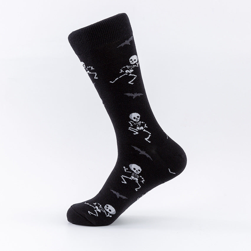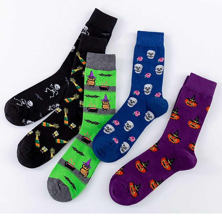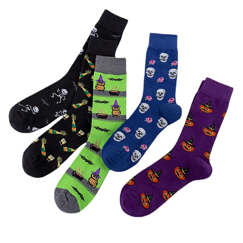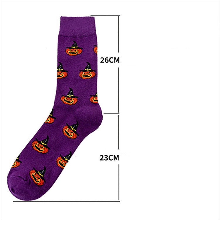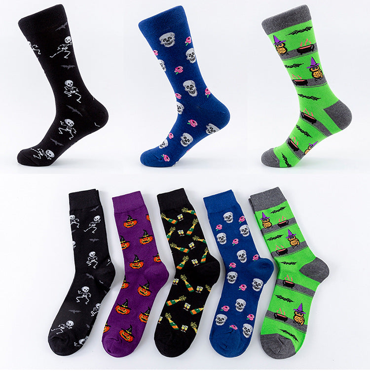 Product information: Fabric name: Cotton Color: Black skull, purple pumpkin head, black wine bottle, blue skull, Green Owl Length of socks: high cylinder Main fabric composition: Cotton Size: average size (40-47) Applicable Gender: Male Function:...
