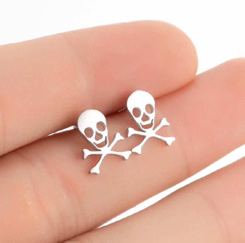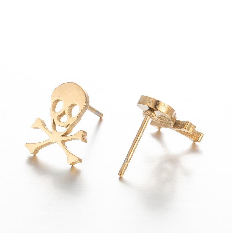 Tags : black gold rose earrings, fashion jewelry accessories, halloween horror earrings, non-inlaid ear studs, stainless steel earrings, women's stud earrings,