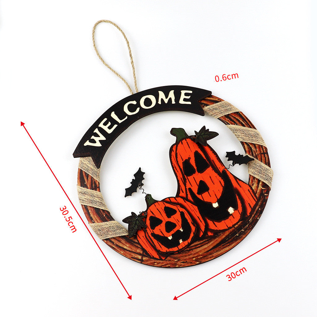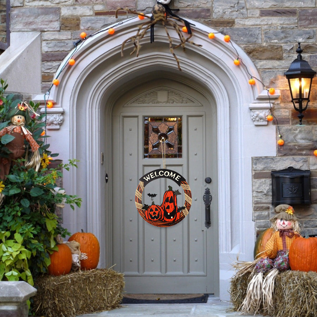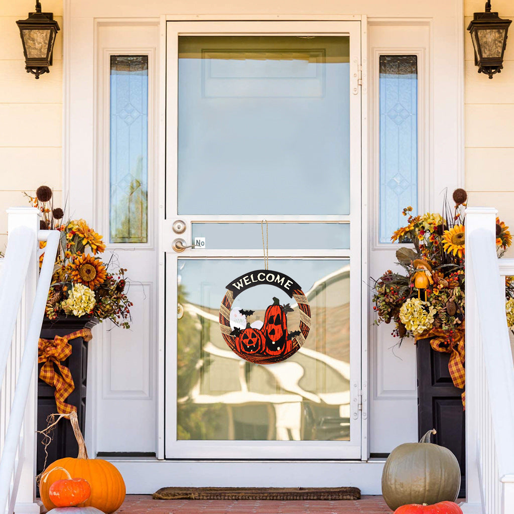 Welcome Sign Garland Door Hanging Halloween Wooden Pumpkin
