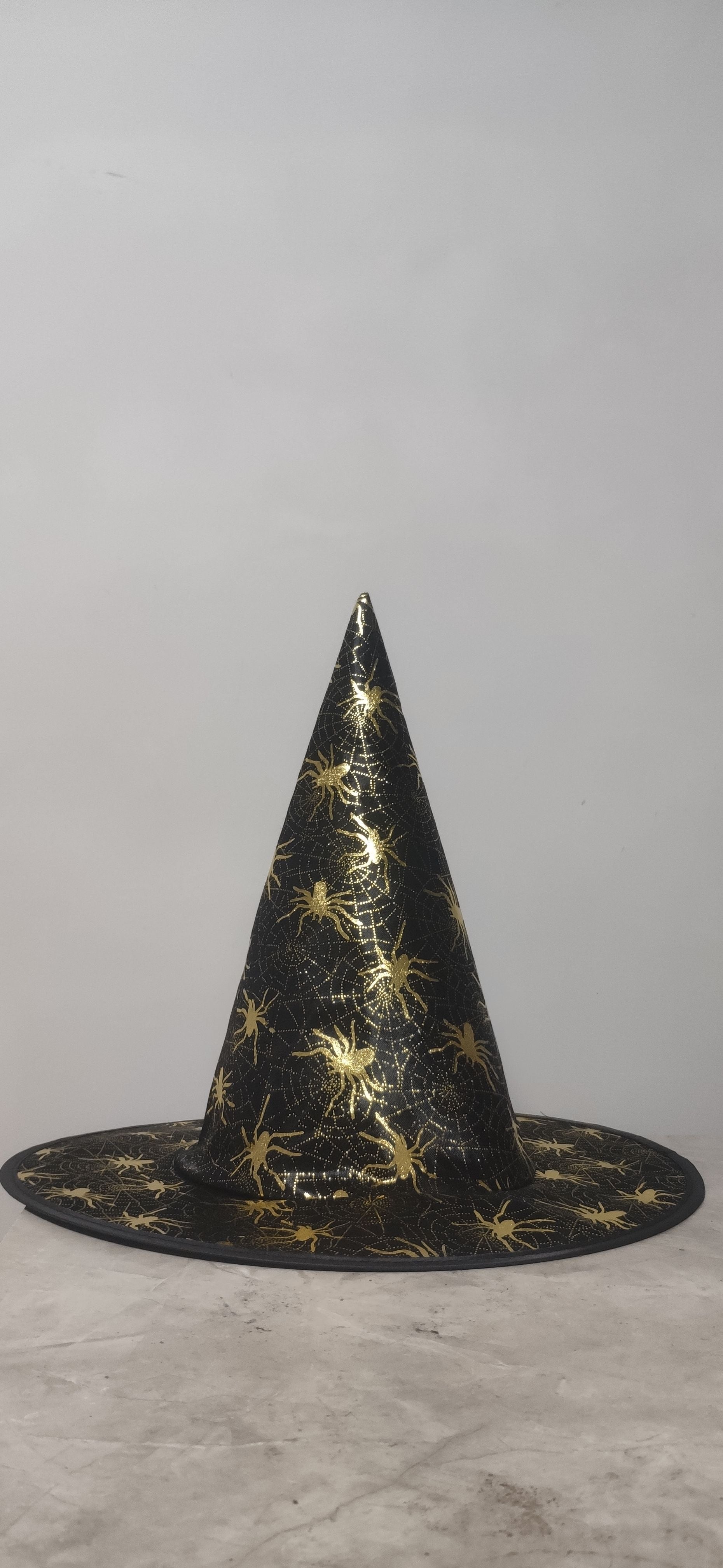 Color: all black pointed hat, bronzing orange witch hat Black, color Golden Witch Hat Black, bronzing Spider Witch Hat, Silver hot Spider Witch Hat, purple Halloween witch hat, blue background golden logo witch hat, pink background gold logo witch hat, purple gold logo witch hat, black shiny witch hat, Moon ornament witch hat, Orange Gold logo witch hat, bronzing Spider Witch Hat B, golden witch hat Cape suit (contact customer service for specific styles)