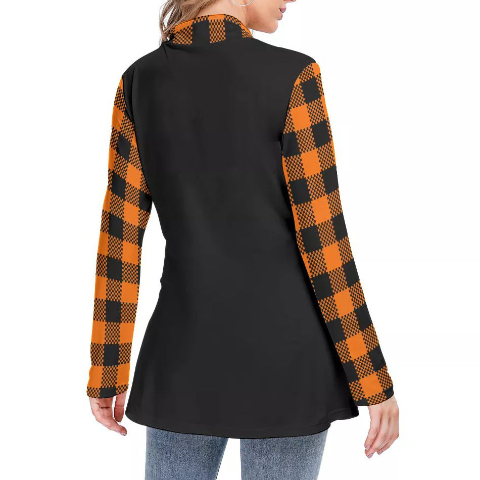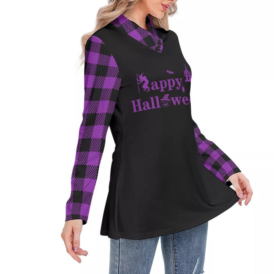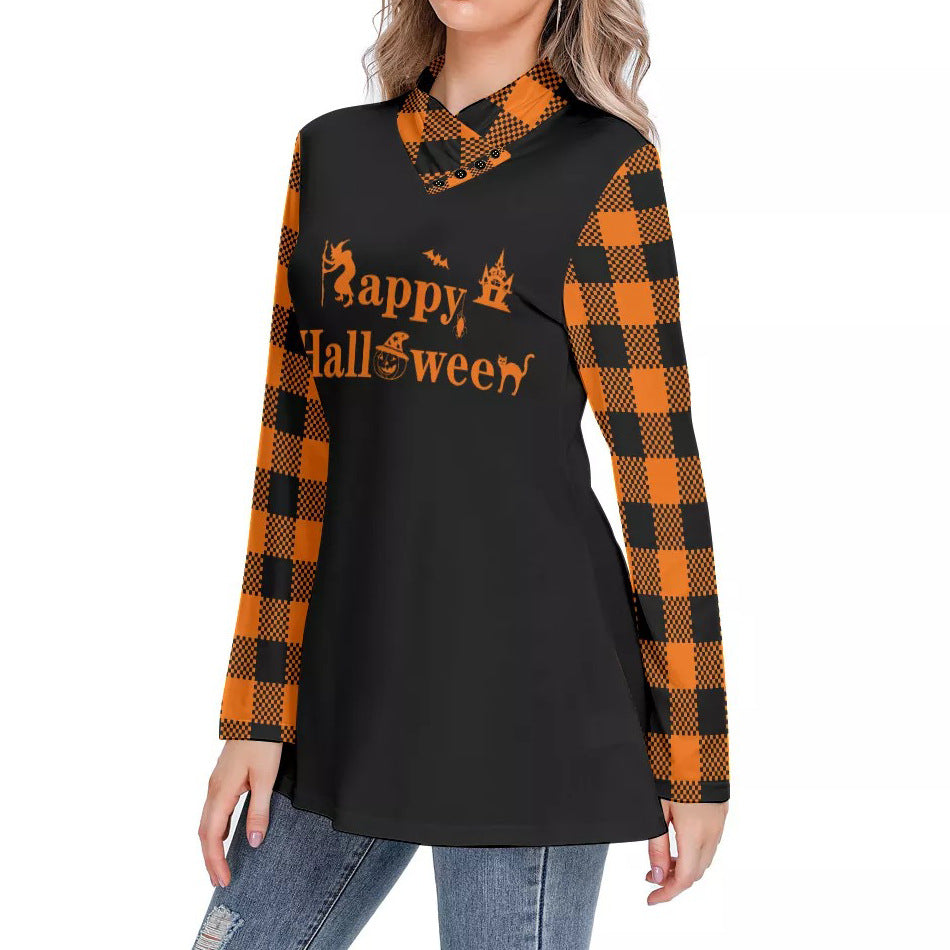 Fashion Halloween Women's Plaid Long Sleeve High Neck Slim Casual Tunic Top