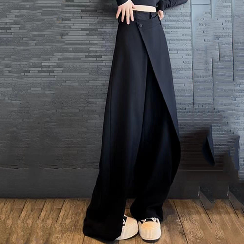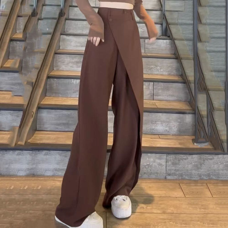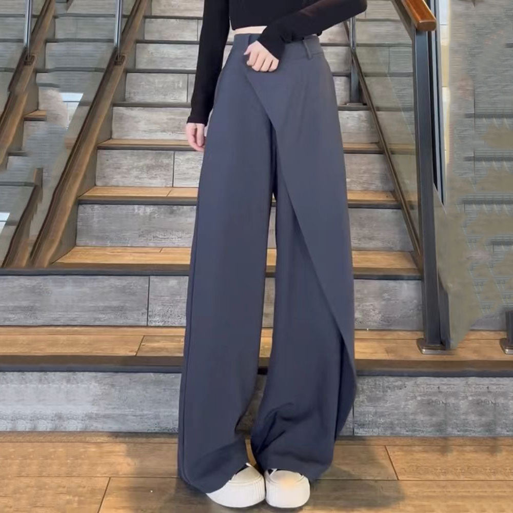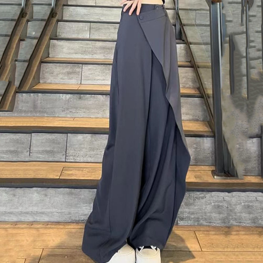 Fashion Irregular Stitching Straight-leg Trousers Women's Fried Street Pleated Suit Pants