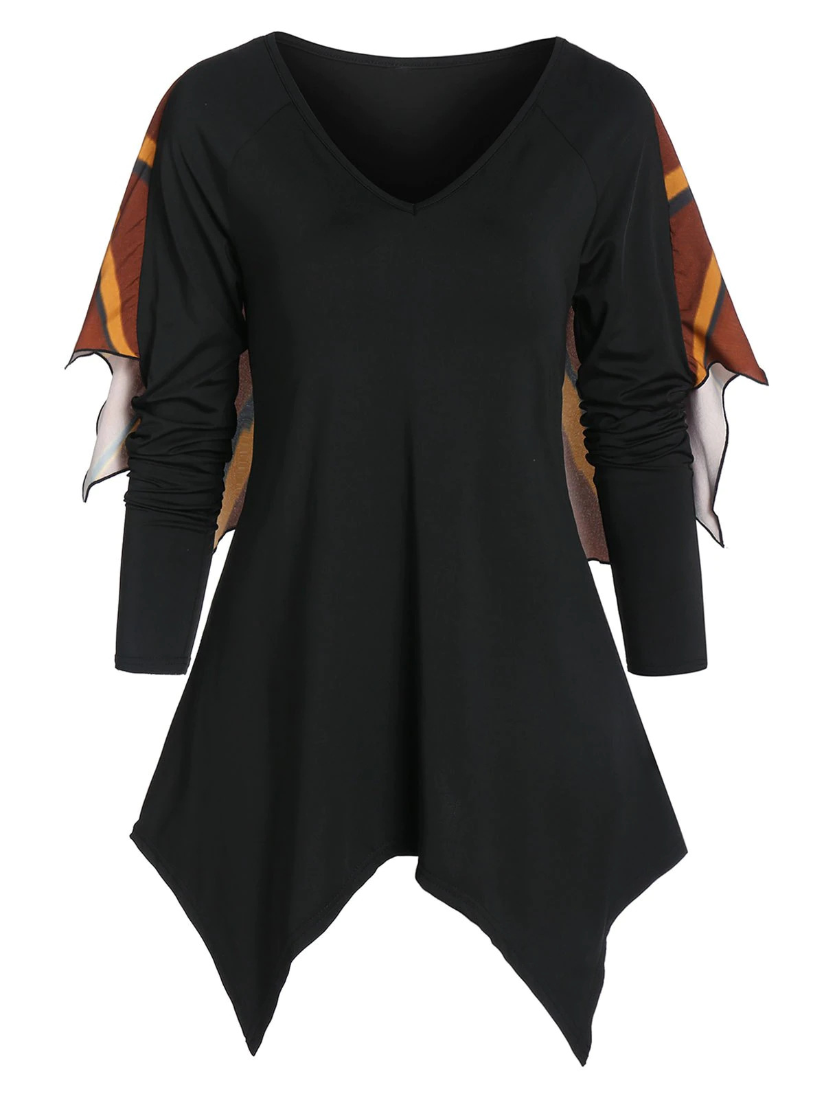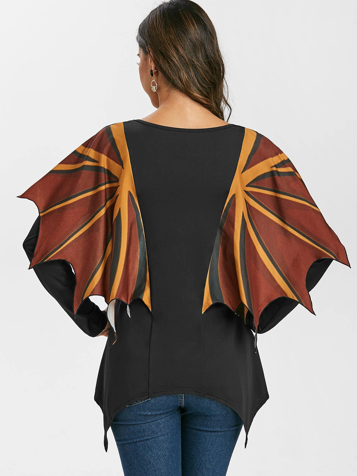 Halloween Print Bat Wings Long Sleeve T-shirt European And American Women's Tops