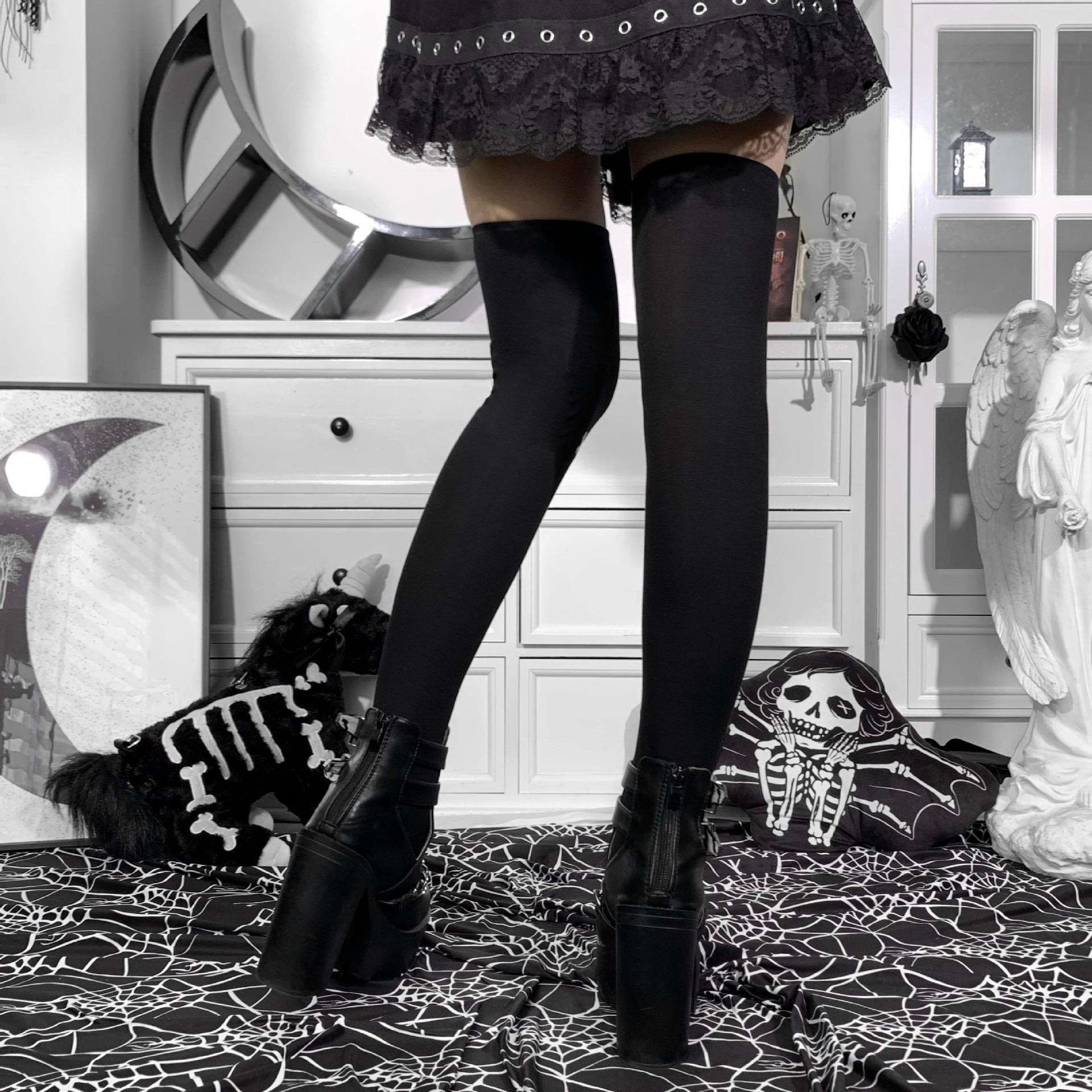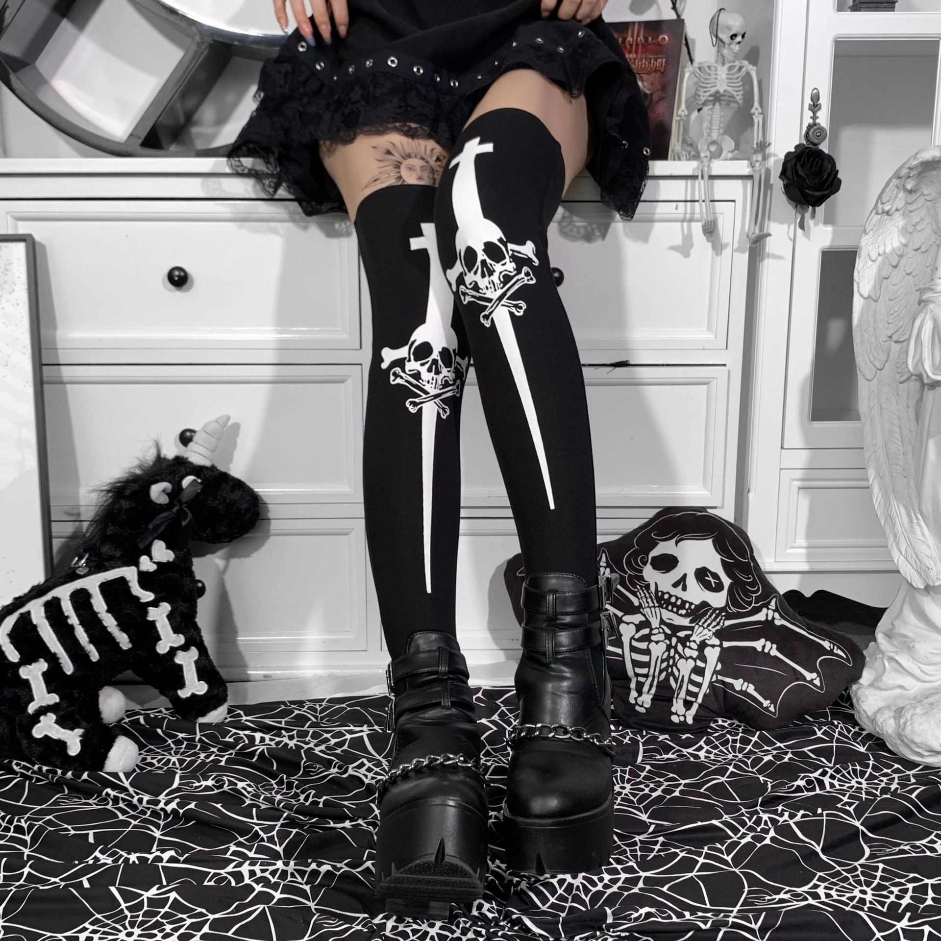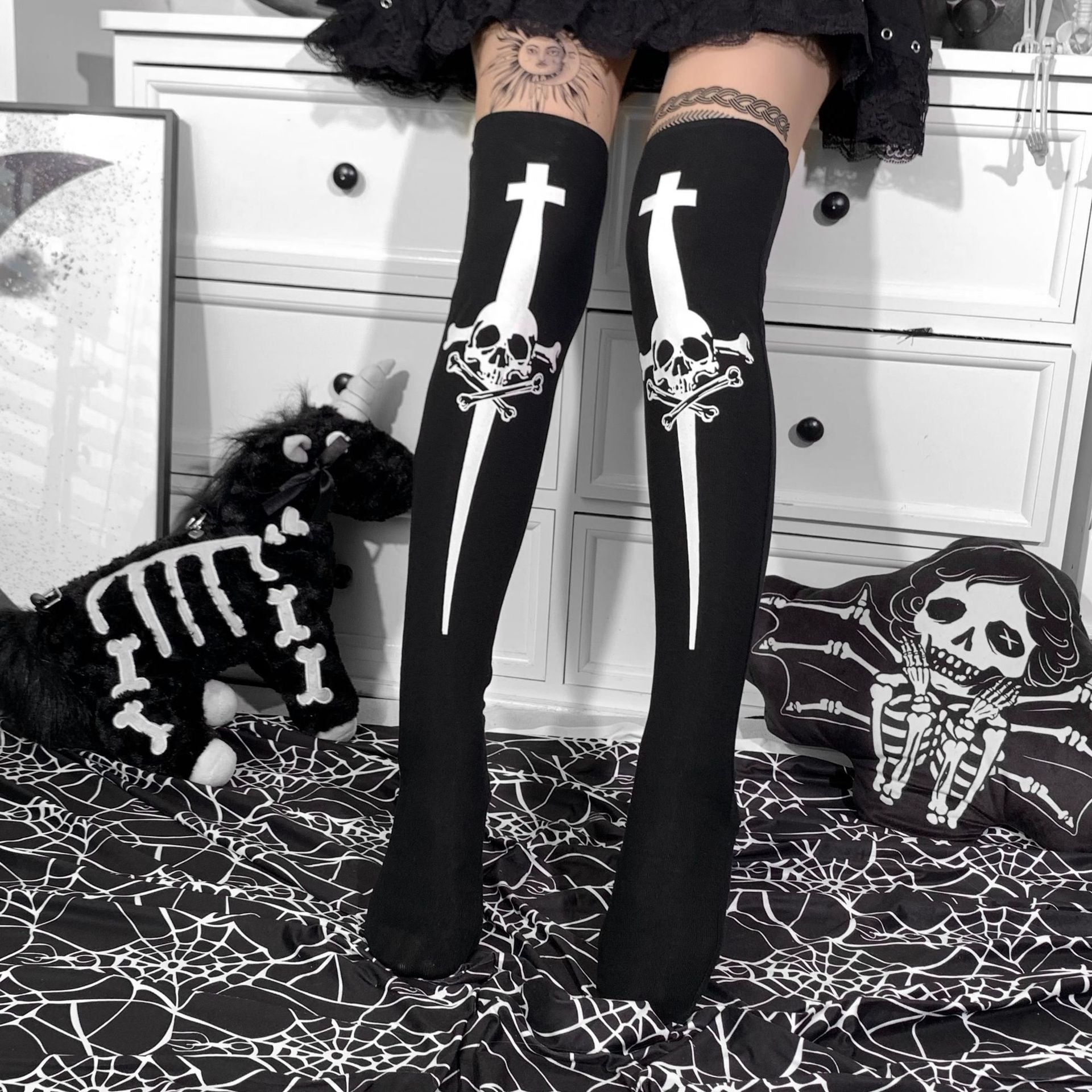 Halloween Skull Over The Knee Stockings Women's Clothing