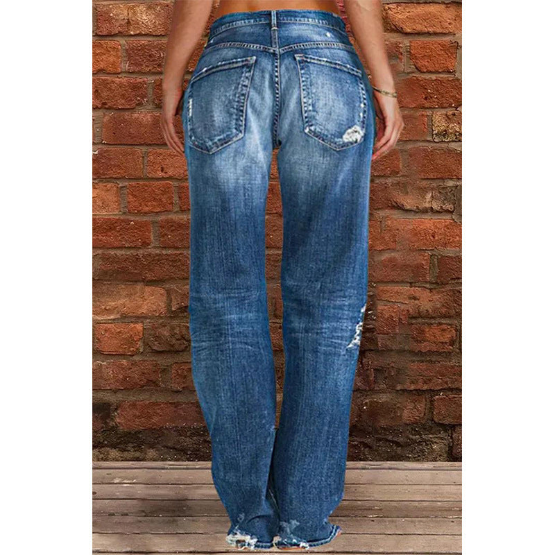 Women's Denim Trend Mid Waist Ripped Leisure Straight-leg Pants