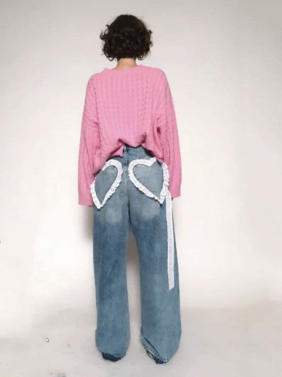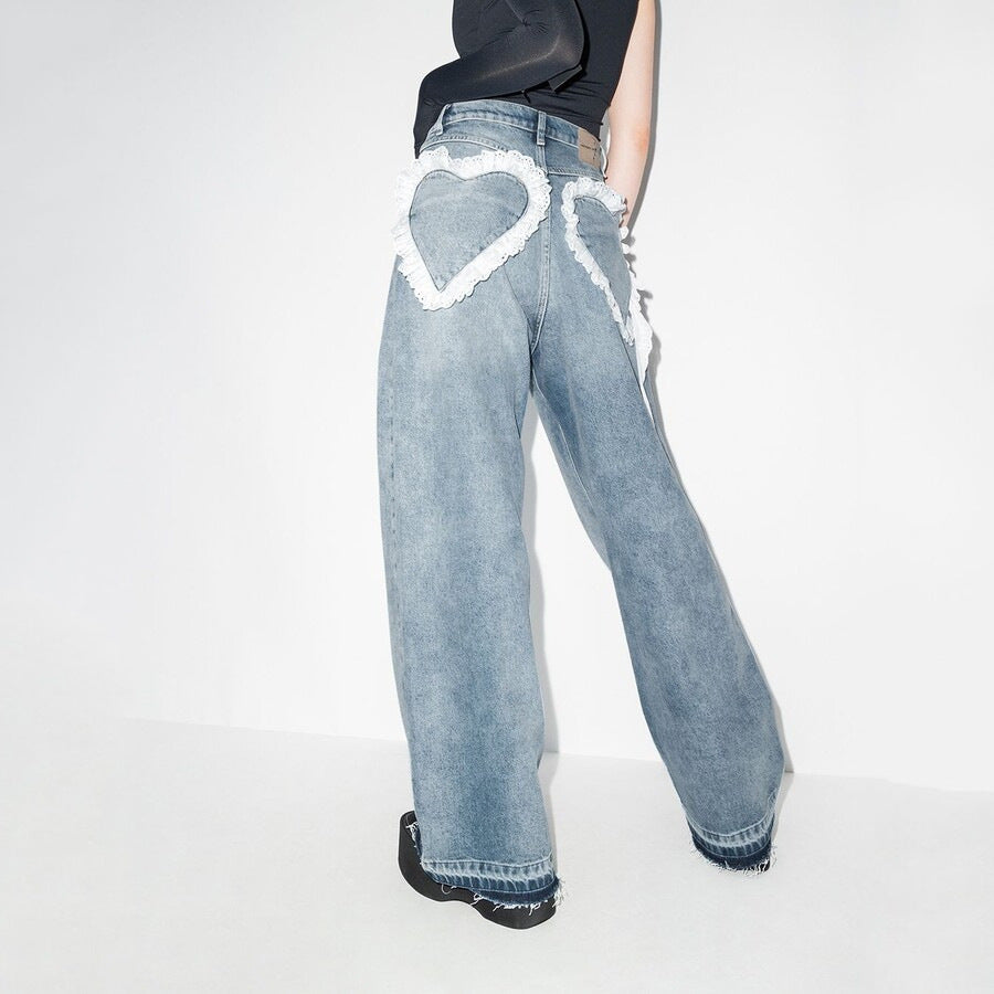 Tags : blue denim pants, casual pocket jeans, denim straight-leg pants, distressed denim pants, retro style jeans, women's fashion jeans,