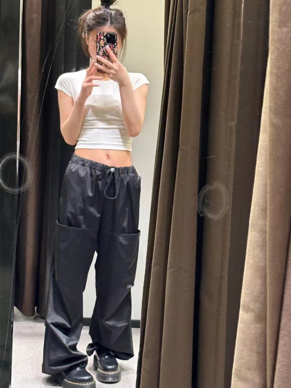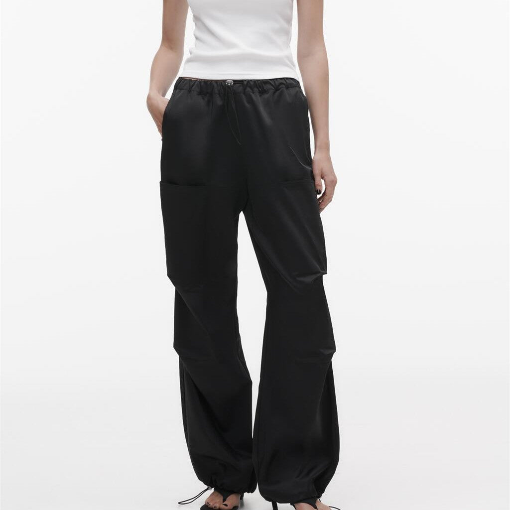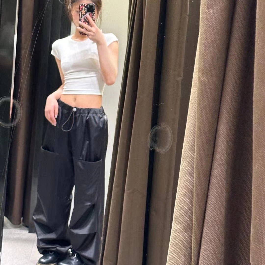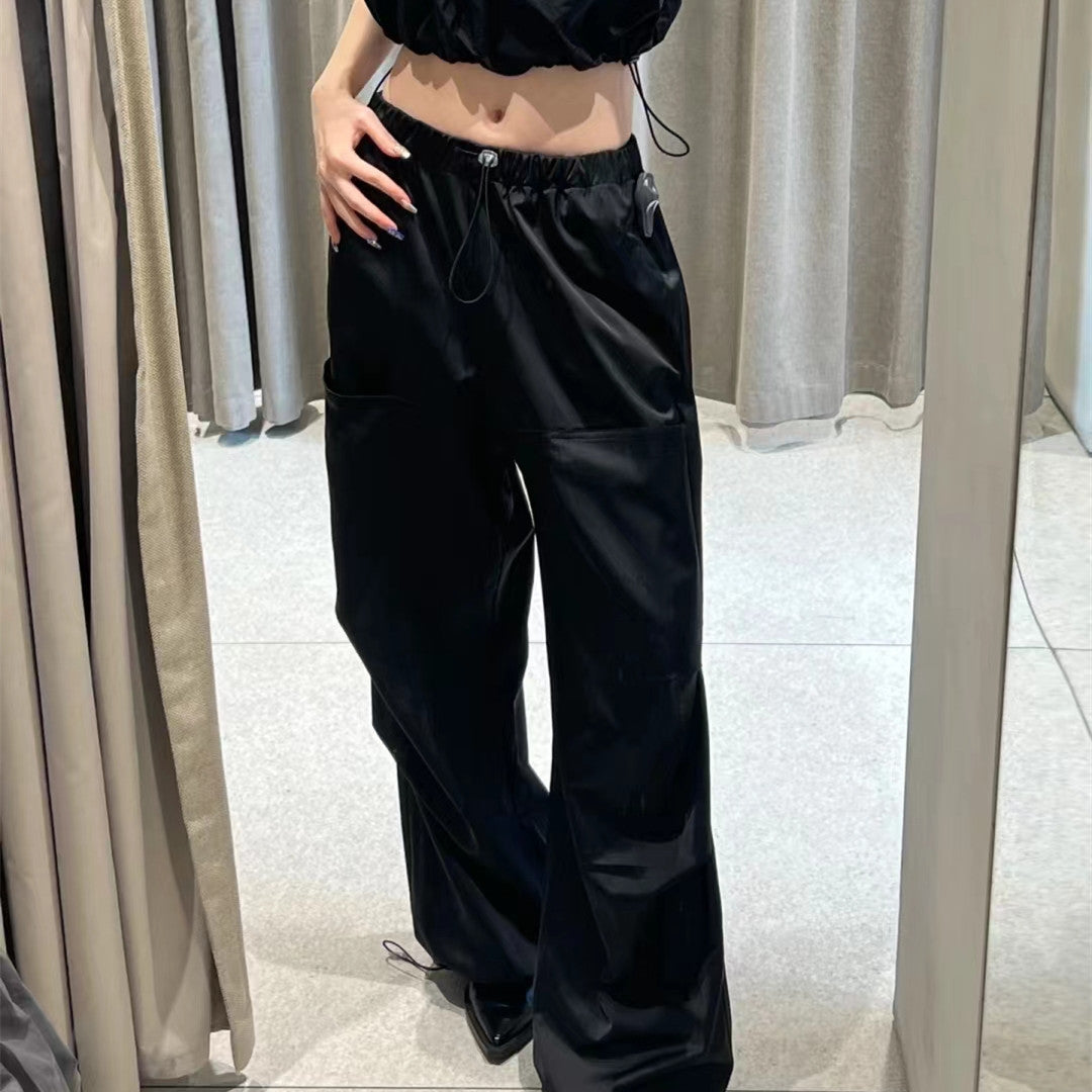 Tags : black mesh pants, fashionable casual pants, female wide-leg trousers, silk satin wide-leg pants, women's high waist pants, xs to l size pants,