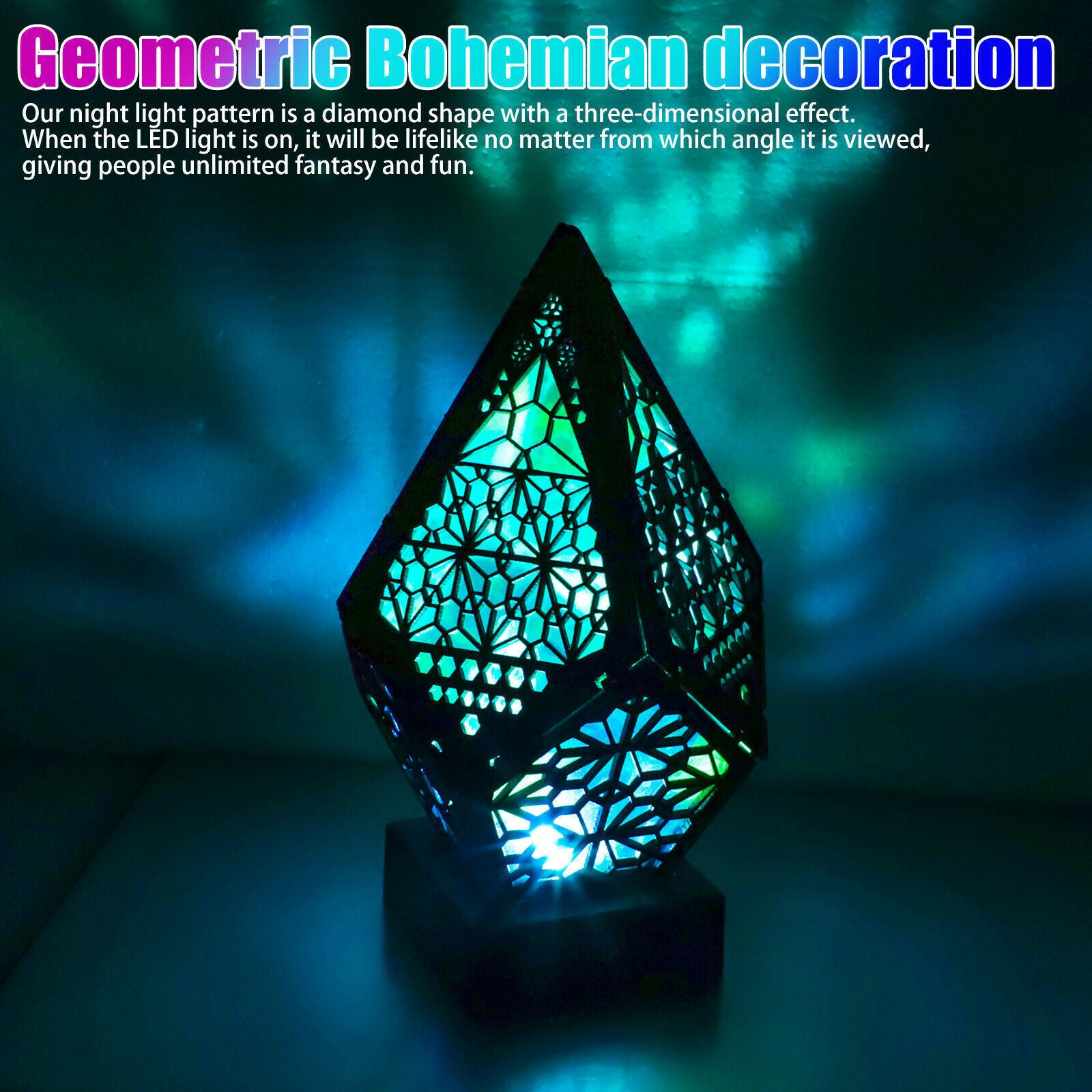 Tags : 3d colorful lamp, bohemian led night light, decorative projection light, geometric pattern nightlight, romantic atmosphere lighting, starry sky projector,