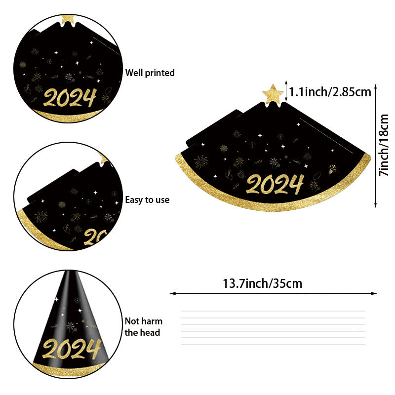 Tags : 25x13.5cm theme hats, new year 2024 paper hat, pack of 6 new year hats, party decoration hats, photo props paper craft, semi-handmade party hats,