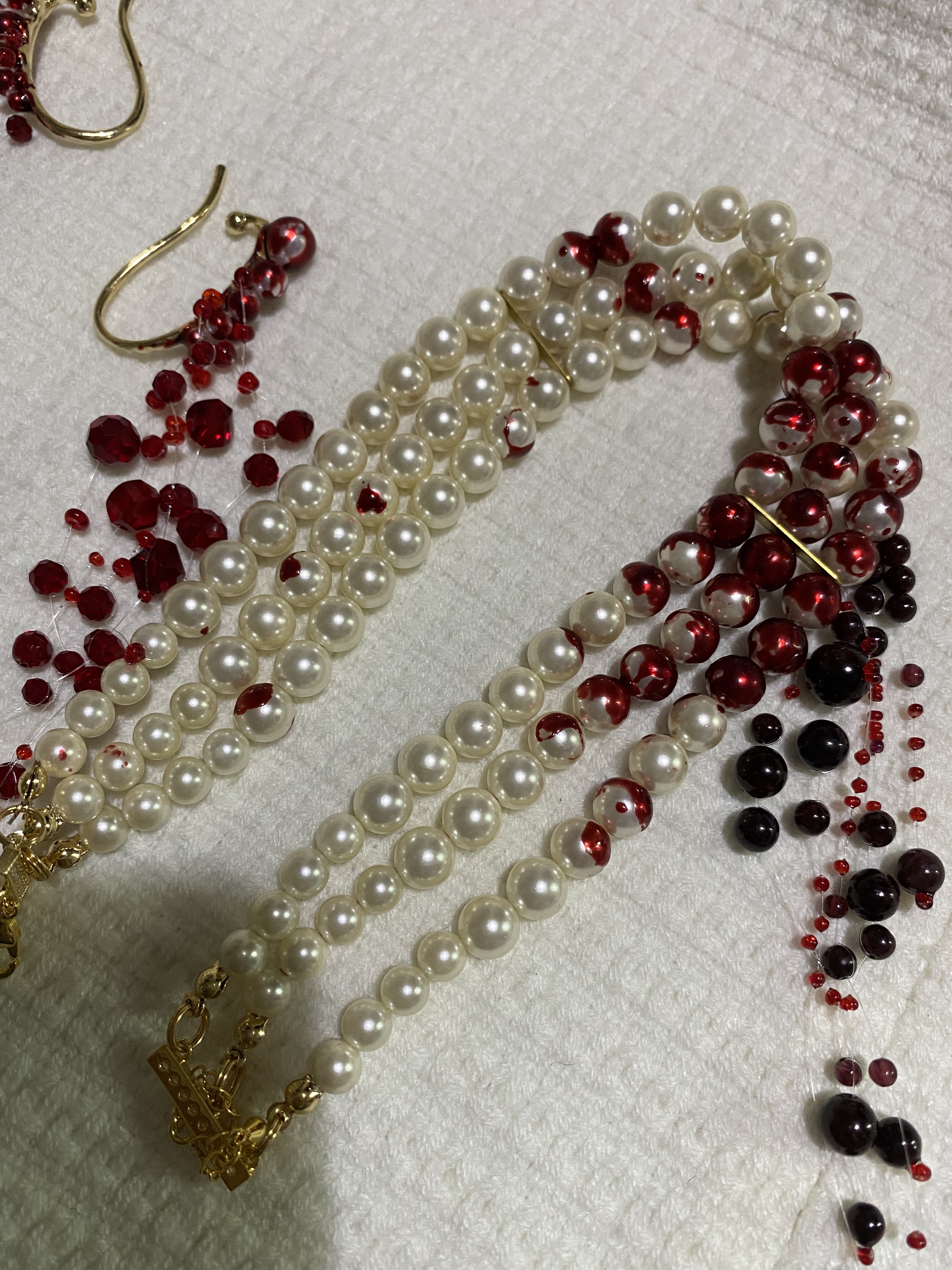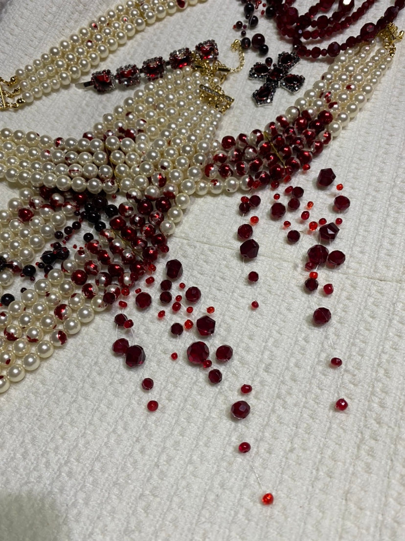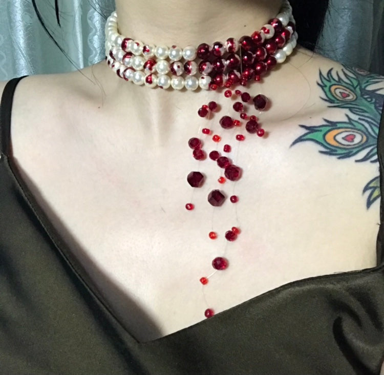 Bloody Pearl Necklace Show Style Halloween Three Layers