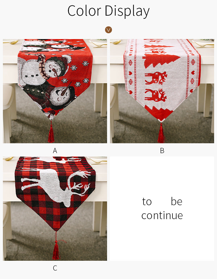 Material cotton and linen Specifications Electric embroidered knitted fabric table runner snowman style, electric embroidered knitted fabric table runner small tree style, electric embroidered knitted fabric table runner elk style
