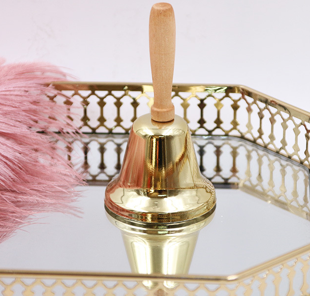 Product Information:  Product name: Wooden handle liberty bell Process: electroplating Color: gold, red Size: 6.3*12 CM Weight: 0.0 4 kg Packing: single PP bag Material: wrought iron Packing list: Wrought iron handbell*1