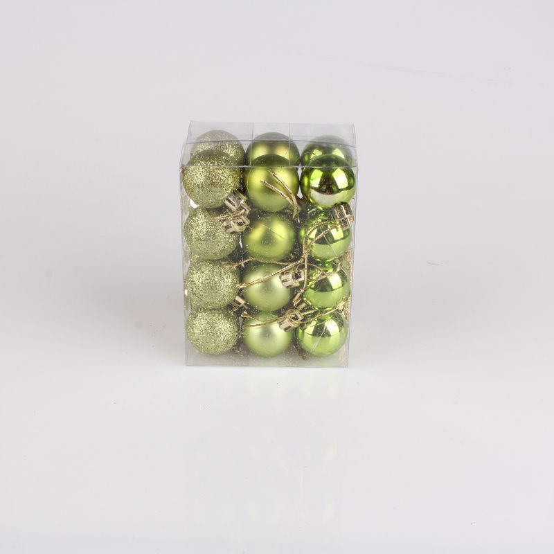 Product information: Packing: OPP bag Material: plastic Size: 24 pcs per box of 3cm Color: red, gold, silver, blue, purple, fruit green, red Process: Electroplating   Packing list: Christmas balls*1 bucket