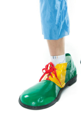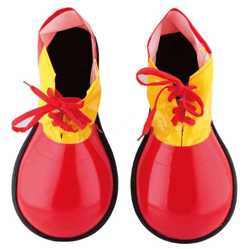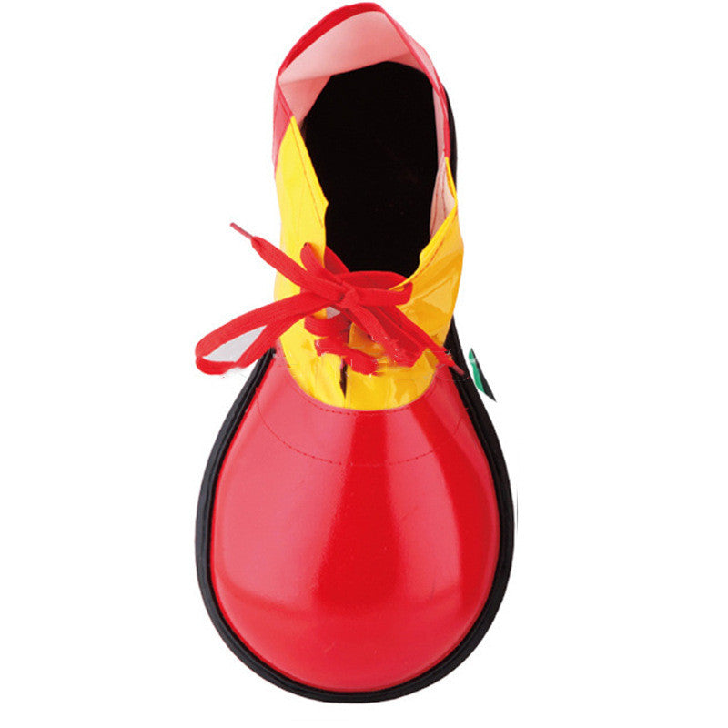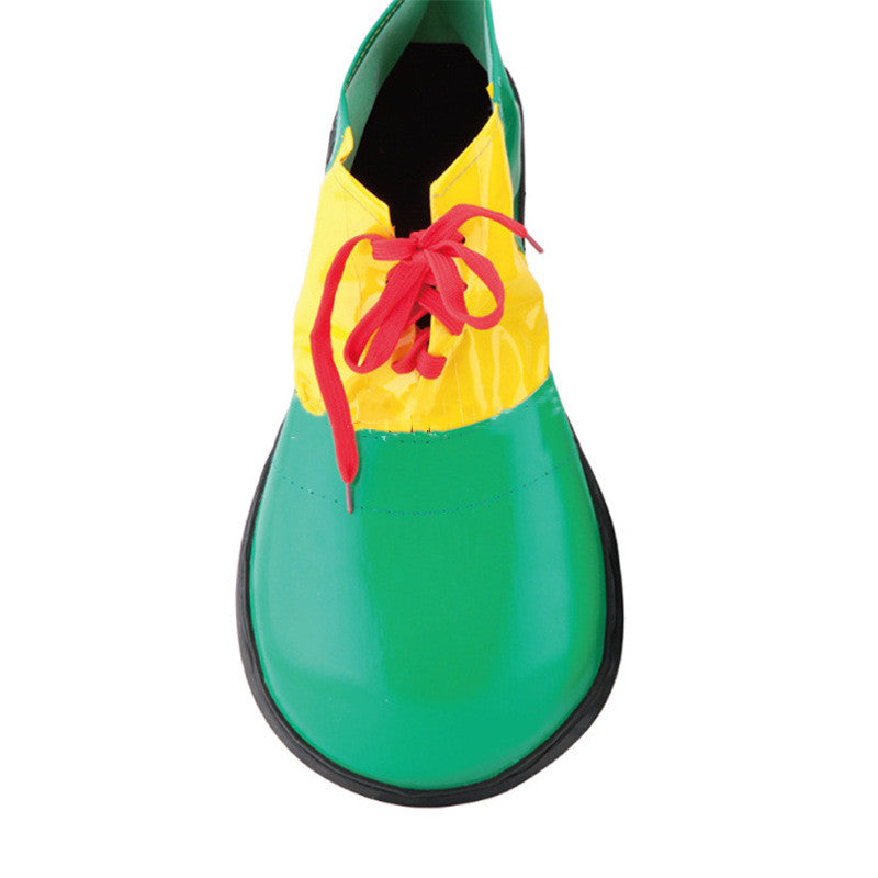 Color: green leather clown shoes,, red leather clown shoes